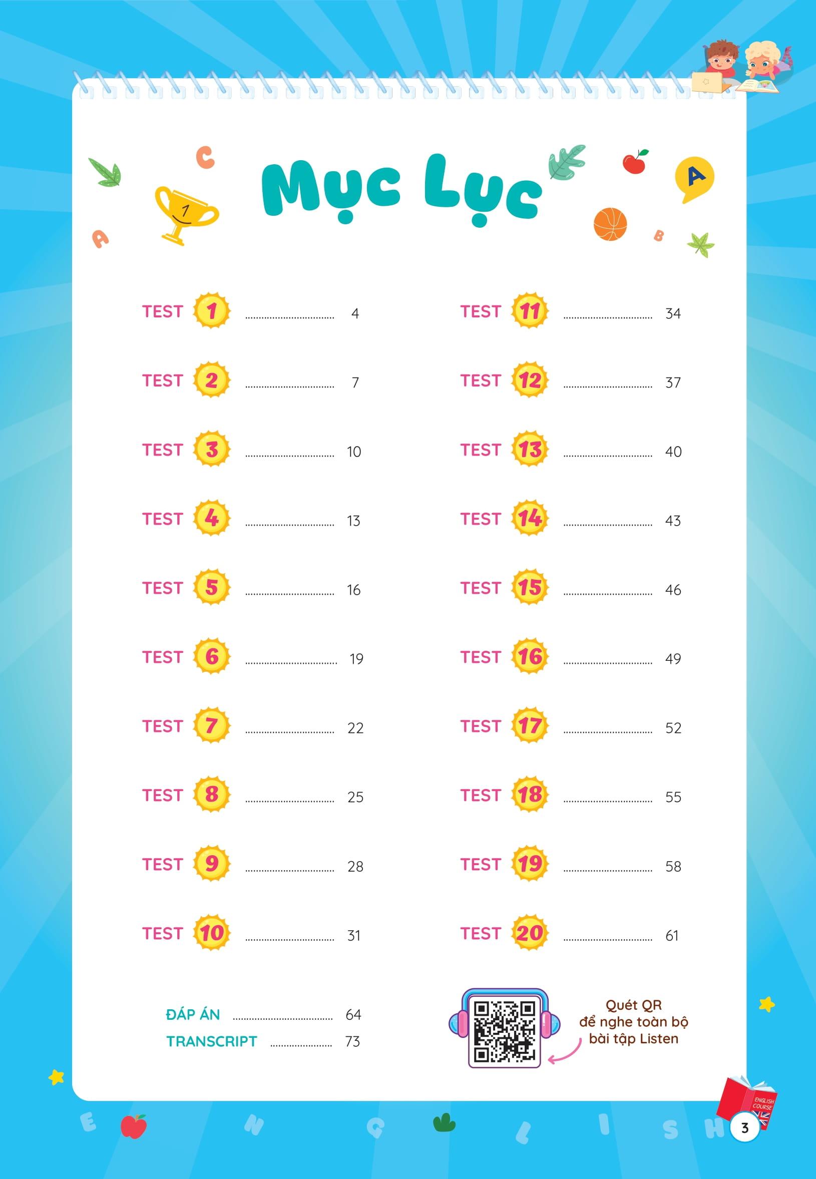 Cuốn sách bao gồm 20 bộ đề giúp các em thực hành và nắm vững kiến thức thông qua các dạng bài tập khác nhau. Sự đa dạng này cũng giúp rèn luyện khả năng tư duy, suy luận và kích thích trí tưởng tượng của các em nhỏ.