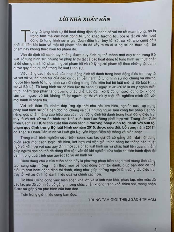 Phương Pháp Định Tội Danh Với 538 Tội Phạm Quy Định Trong Bộ Luật Hình Sự Năm 2015, Được Sửa Đổi, Bổ Sung Năm 2017 (Tái Bản Có Bổ Sung)