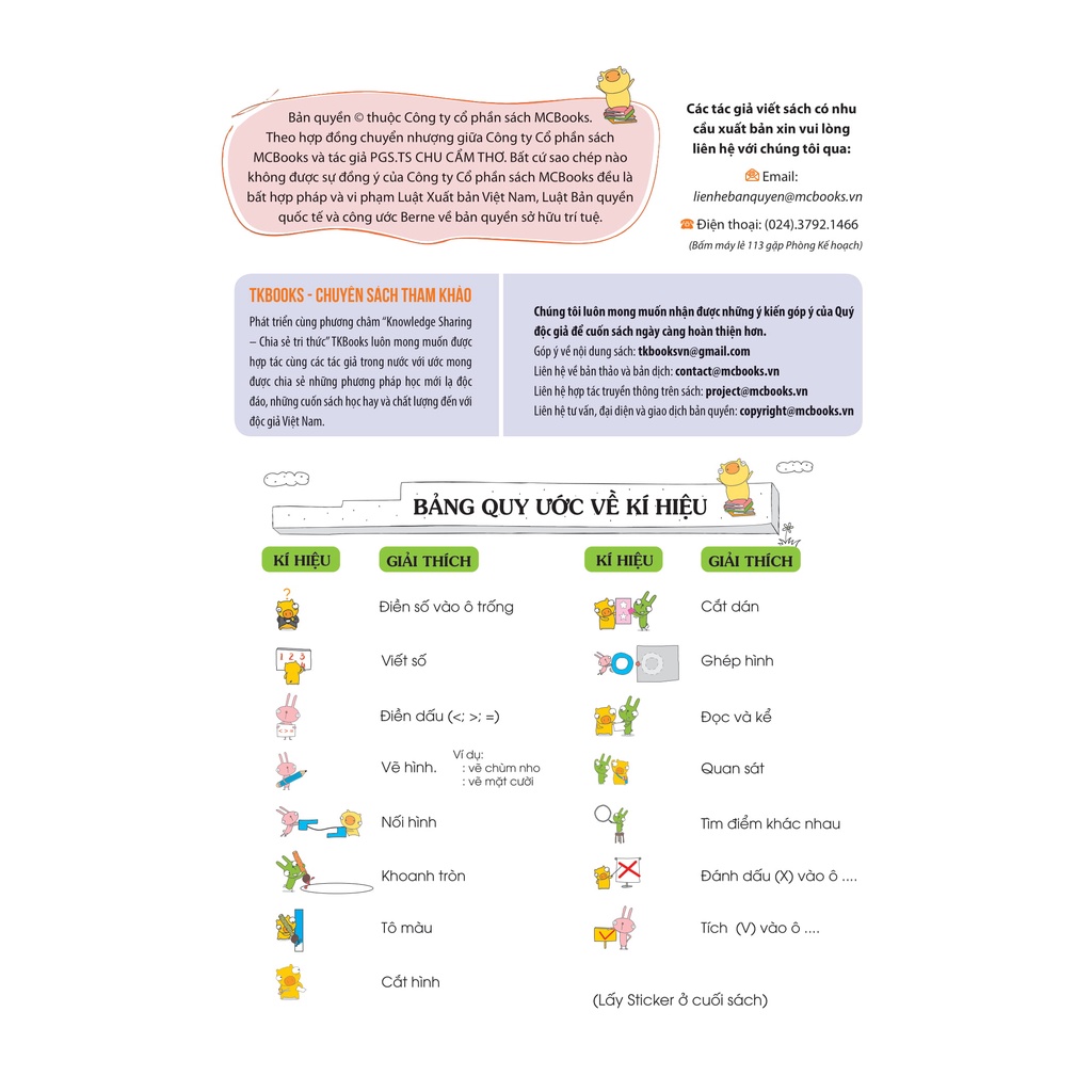 Mã sản phẩm: 8935246918579 Nhà phát hành: MCBOOKS Tác giả: Chu Cẩm Thơ Năm xuất bản: 2018 Nhà xuất bản: NXB Đại học Quốc gia Hà Nội Số trang: 84 Kích thước: 19*27cm Giới thiệu sách Pomath 2 – Toán tư duy cho trẻ em từ 4 – 6 tuổi Tôi là Chu Cẩm Thơ, nhà sáng lập chương trình Toán POMATH, đồng thời là chủ biên của bộ sách Pomath – Toán tư duy cho trẻ em từ 4 – 6 tuổi, xin đại diện cho các tác giả gửi lời chào trân trọng đến Quý bạn đọc. Với gần 20 năm nghiên cứu trong đó có hơn 6 năm triển khai chương trình POMATH, chúng tôi đã thực nghiệm thành công với hàng vạn học sinh theo học tại 7 trung tâm, hàng chục trường Mẫu giáo, Tiểu học trên địa bàn Hà Nội. Chúng tôi hiểu rằng toán học là một công cụ hữu ích góp phần phát triển tư duy cho trẻ em. Chúng tôi ước mơ rằng, từ việc cảm nhận được toán học thật đẹp, toán học hấp dẫn, toán học gần gũi, mà mỗi em sẽ học toán bằng sự thích thú, từ đó phát triển tài năng của các em. Bộ sách Pomath – Toán tư duy cho trẻ em 4 – 6 tuổi là sự ấp ủ và tinh hoa những kinh nghiệm của chúng tôi. Khoa học đã chỉ ra rằng trong những năm tháng đầu tiên đi học, các em cần được cha mẹ, thầy cô giúp học toán đúng cách. Các em cần được trải nghiệm những hoạt động được thiết kế khéo léo để giúp các em tiếp cận toán học bằng quan sát, tưởng tượng; để phát triển trí thông minh logic (IQ), trí thông minh cảm xúc (EQ), phát triển năng lực giải quyết vấn đề và sáng tạo. Các em sẽ được chơi mà học đầy cảm hứng. Chúng tôi không tuyên ngôn bộ sách sẽ giúp các em nhỏ trở thành thần đồng toán học. Mỗi đứa trẻ đều sẽ có những thế mạnh riêng. Sau này, có em sẽ thành họa sĩ, có em thành vận động viên, có em sẽ là cô giáo, là bác sĩ, là nhà khoa học. – Nhưng chắc chắn các em đều sẽ nhận thấy toán học gần gũi, có ích cho công việc của mình. Vì thế, chúng tôi đồng hành cùng các bậc cha mẹ của mỗi đứa trẻ thông qua môn Toán. Trong lần xuất bản này, bộ sách gồm 6 tập. Mỗi bài học trong các tập sách được thiết kế qua các hoạt động trò chơi, thực hành gắn liền với các tình huống thực tiễn và những câu chuyện sáng tạo, kích thích trí tưởng tượng, năng lực ngôn ngữ và cả tư duy thẩm mỹ. Các kiến thức toán học được cài đặt trong các hoạt động với mức độ phức tạp tầng dẫn, hướng tới phát triển trí tuệ, phát triển tư duy, trong đó đặc biệt chú ý đến tư duy về số, tư duy hình học và tư duy logic. Với mong muốn các bậc phụ huynh có được tài liệu và phương pháp dạy toán cho con đúng cách, chúng tôi xin giới thiệu tới các bạn bộ sách: POMATH – Toán tư duy cho trẻ em. Các em sẽ được tiếp cận toán học bằng quan sát, tưởng tượng để phát triển trí thông minh logic (IQ), trí thông minh cảm xúc (EQ) và phát triển năng lực giải quyết vấn đề và sáng tạo thông qua bộ POMATH này. Bộ sách gồm 6 tập, kiến thức được sắp xếp tăng dần qua từng tập và dành riêng cho trẻ em từ 4 – 6 tuổi. Tập 2 với những kiến thức cơ bản sẽ là bước đầu tiên để các bé tiếp xúc với toán học. Nội dung cuốn sách Nội dung chính sách POmath 2 – Toán tư duy cho trẻ em 4 – 6 tuổi: Giới thiệu số 0. Giới thiệu mối quan hệ giá trị giữa các số trong phạm vi 10: lớn hơn, nhỏ hơn, bằng, lớn nhất, nhỏ nhất,… thông qua công cụ trực quan: tia số. Giới thiệu các phép toán cộng trừ thông qua sự thêm bớt đồ vật. Tiếp tục củng cố các mối tương quan về độ dài: cao nhất – thấp nhất, dài nhất – ngắn nhất, giới thiệu tương quan về cân nặng. Chú trọng các hoạt động rèn luyện tư duy tương ứng, năng lực tưởng tượng không gian. Những ưu điểm tuyệt vời của cuốn sách POMATH tập 2 Cuốn sách gồm 20 bài học thú vị Pomath tập 2 – Toán tư duy cho trẻ em gồm 20 bài học, mỗi bài học được thiết kế theo dạng trải nghiệm. Các bé sẽ được hòa mình vào những câu chuyện thú vị. Đó là những câu chuyện thực tế giúp bé tiếp cận toán học một cách tự nhiên và ươm mầm tiềm năng toán học. Ví dụ như ở bài 2 của tập này các em sẽ được học bài: Ai có nhiều kẹo nhất. Thông qua những hình ảnh chiếc kẹo gần gũi, nhiều màu sắc bé sẽ được học các phép so sánh, các số đếm cơ bản từ 1 – 10. Mỗi bài học nhiều hoạt động giúp bé phát triển tư duy toàn diện Nội dung mỗi bài học được thiết kế sống động, các bé sẽ được thực hành qua nhiều hoạt động đơn giản nhưng gần gũi và mang lại nhiều lợi ích cho việc phát triển tư duy của bé. Một số hoạt động bé được thực hành như: Tô màu, ghép nối, thực hành các phép so sánh đơn giản, đếm số, nhận biết mặt số, viết số, hình học…. Phụ huynh dễ dàng ứng dụng phương pháp vừa học toán vừa vui chơi cùng con Với POMATH các bậc phụ huynh đóng vai trò quan trọng trong quá trình học tập của con. Cha mẹ vừa học vừa chơi, hướng dẫn 