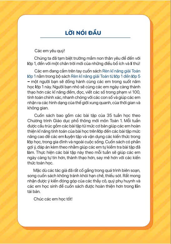 Bộ sách Hướng dẫn học toán lớp 1 - quyển 1 , 2 , 3 , 4 được biên soạn bởi trường Archimedes school nhằm cung cấp cho các em học sinh lớp 1 cùng