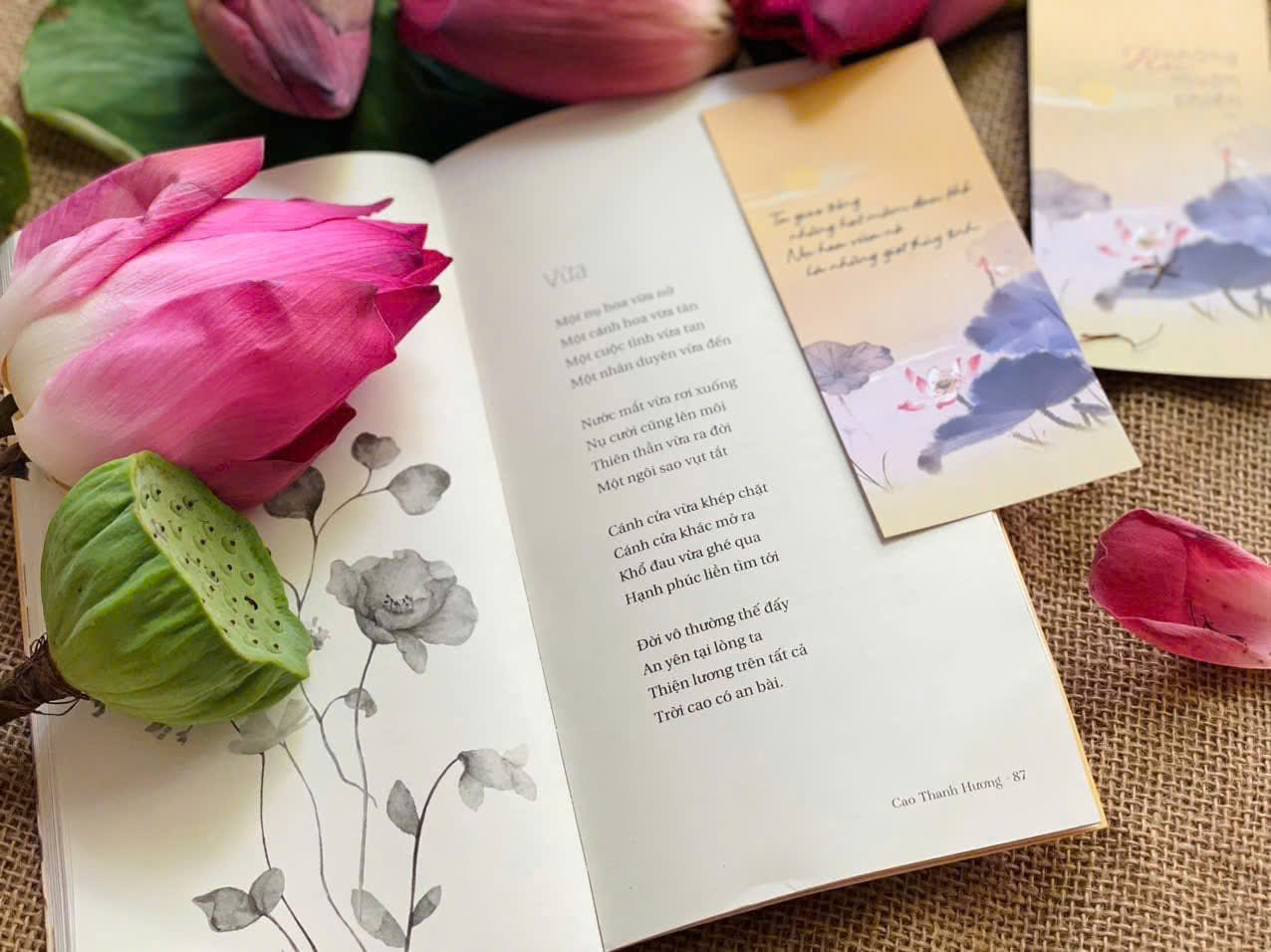 “Đóa hoa tỉnh thức nở giữa vô thường” là tập thơ kết hợp tô màu giúp bạn buông bớt những vội vàng, thong dong mọi nẻo đường! “Hạnh phúc là gì nhỉ Là nhà rộng,