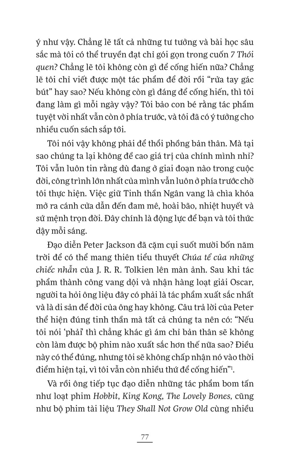 Cuốn sách này là một lời kêu gọi sống trọn vẹn, tạo ra một cuộc sống đầy ý nghĩa và đóng góp vào sự thay đổi tích cực trong thế giới xung quanh chúng ta. Nó có thể là một nguồn động lực cho những ai đang tìm kiếm một phương hướng sống với mục tiêu và sức ảnh hưởng mạnh mẽ.