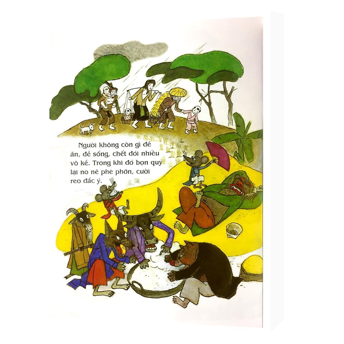 Mua tại TiktokGiới thiệu sách Những câu chuyện dân gian giúp các em giàu thêm mơ ước, biết sống đẹp và trân trọng truyền thống cha ông. CÙNG TÌM ĐỌC HƠN 100 CUỐN TRANH TRUYỆN DN GIAN VIỆT NAM! Trích đoạn Xa xưa, loài quỷ chiếm đất của người, người chỉ được ăn nhờ ở đậu và phải nghe lệnh của quỷ. Nhờ Phật mách nước, người mới đuổi được lũ quỷ, yên ổn làm ăn. Phật gia ân, cho lũ quỷ về thăm viếng phần mộ tổ tiên vào dịp Tết hằng năm. Cứ vào dịp ấy, người trồng cây nêu trước cửa, để ngăn ngừa quỷ ác đến hại mình…