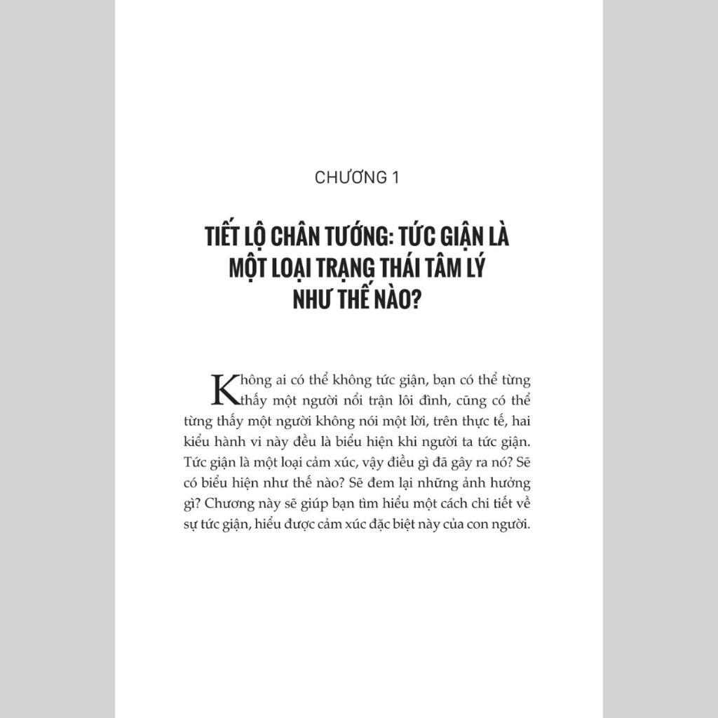 Nhà lãnh đạo quân sự nổi tiếng Napoleon từng nói: "Một người có thể kiểm soát cảm xúc của mình còn vĩ đại hơn một vị tướng có thể đánh hạ một thành trì." Khi ta tức giận thì sẽ luôn có "lửa vô minh" bừng cháy trong lòng. Khi con người khởi tâm "sân si" tức là đã thua rồi, loại người không thể làm chủ được cảm xúc sẽ vĩnh viễn không thể làm chủ được cuộc đời của họ, dẫn đến đánh mất đi lí trí, ngày càng trầm luân. Cuốn sách Tâm lý học về khắc chế cơn giận - Đừng để cơn giận thay đổi con người bạn chính là chìa khoá giúp bạn quản trị cảm xúc của chính mình.