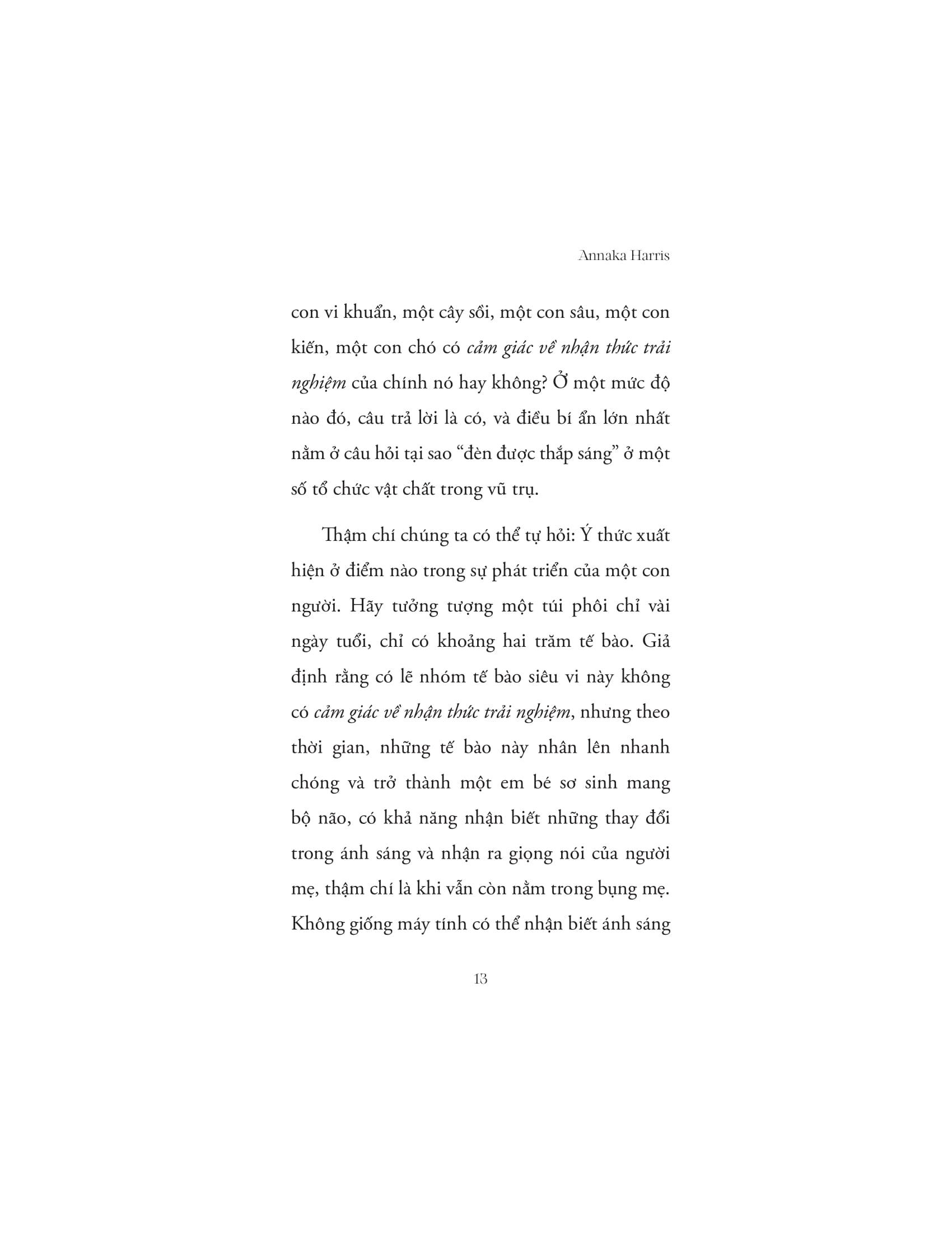 Bằng văn phong súc tích, Harris khéo léo mở lối vào những khái niệm tưởng chừng cao siêu bằng các ví dụ đời thường: một đứa trẻ phản ứng với ánh sáng, cảm giác khi ta bị đánh lừa bởi ảo giác thị giác, hay khả năng "tỉnh thức" bất chợt trong một khoảnh khắc không rõ lý do. Những chủ đề như bản chất của “tôi”, ý thức lan tỏa, vai trò của tiềm thức và trực giác được tiếp cận theo hướng phản biện nhưng vẫn đầy nhân bản. Cuốn sách đi từ những câu hỏi căn bản như “Chúng ta là ai?”, “Ý thức có khắp nơi không?” đến các tranh biện mang tính triết học như “Liệu AI có thể thật sự có ý thức không?”, đặt ra nhiều vấn đề thực tiễn và đạo đức trong thời đại công nghệ.