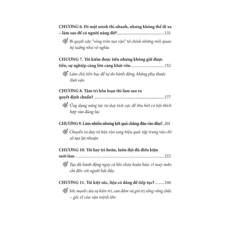 Tạo Vận – Đừng Chờ Thời là cuốn sách truyền cảm hứng mạnh mẽ cho bất cứ ai đang khởi nghiệp hoặc điều hành doanh nghiệp nhỏ và vừa (SME). Tác phẩm nhấn mạnh rằng “vận may” không phải điều ngẫu nhiên, mà là kết quả từ tư duy chủ động, hành động kiên định và sự nhạy bén trước cơ hội.