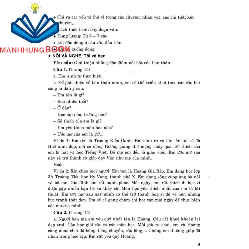Những đoạn văn, bài văn trong cuốn sách này có tính chất tham khảo. Trong quá trình học, các em cần phải có những ý tưởng sáng tạo mới mẻ, độc đáo, bay bổng của riêng mình.\