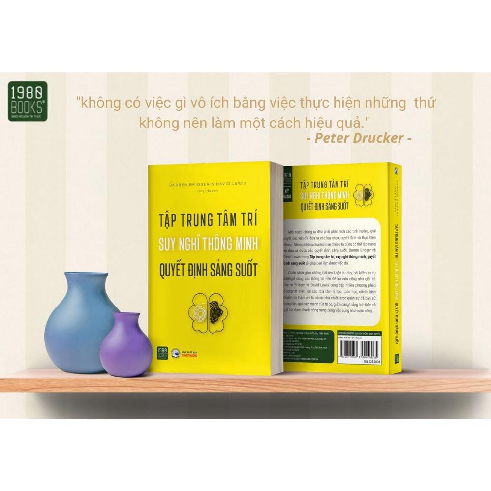 Mỗi ngày chúng ta đều phải phân tích các tình huống, giải quyết các vấn đề, đưa ra các lựa chọn, quyết định và thực hiện chúng.“Tập trung tâm trí, suy nghĩ thông minh, quyết định sáng suốt” sẽ chỉ cho bạn cách để làm các việc trên hiệu quả hơn. Cuốn sách sẽ hướng dẫn bạn cách sử dụng những phương pháp đã được phát triển bởi các nhà tâm lý học, toán học, cố vấn kinh doanh, vận động viên và thậm chí là cả các nhà chiến lược quân sự. Cuốn sách bao gồm những bài luyện tư duy, các bài kiểm tra tự đánh giá cùng với các thông tin nền để tra cứu cũng như giải trí. Tất cả đều là những công cụ giúp bạn sử dụng sức mạnh trí óc hiệu quả hơn.