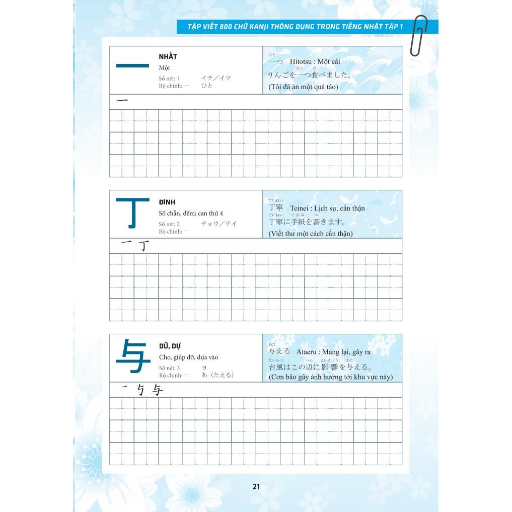 -----------------giới thiệu sách------------------- -Chữ Kanji là một trong 3 hệ chữ thông dụng của Tiếng Nhật với một số lượng rất lớn các từ vựng, là chữ tượng hình, có gốc mượn từ chữ Hán