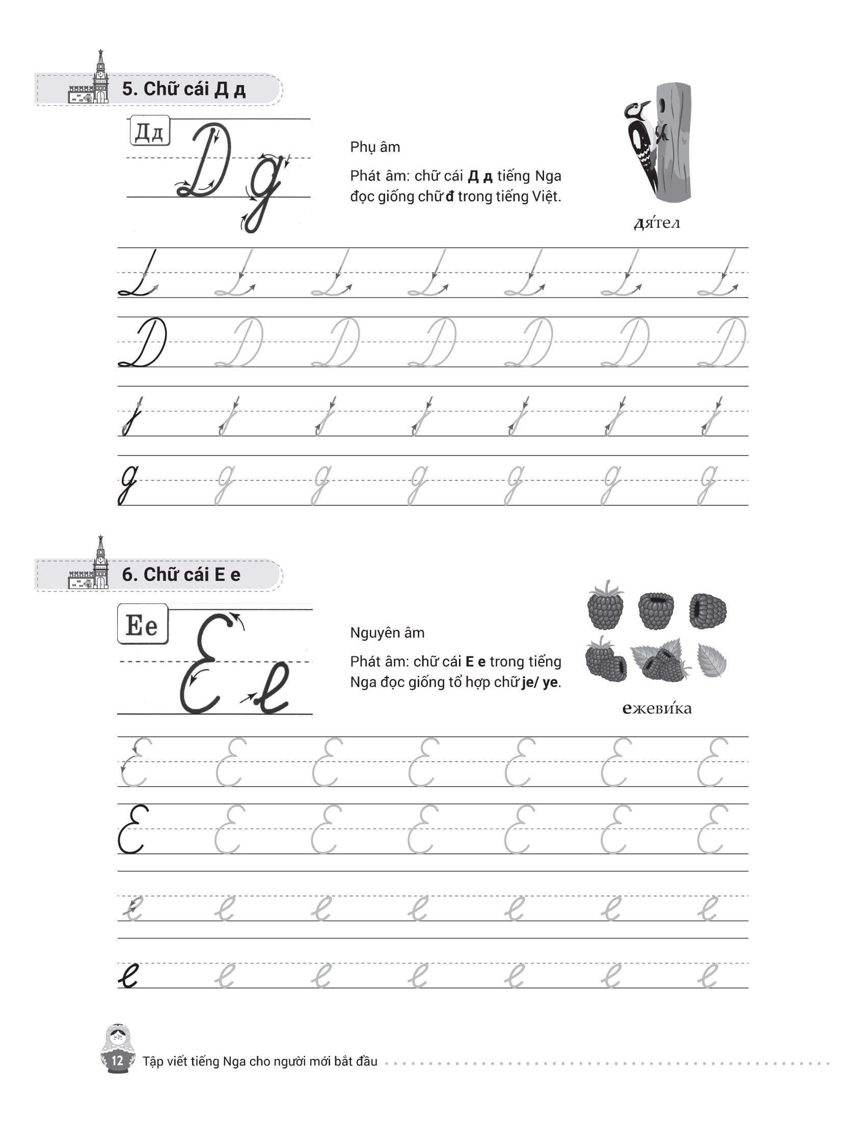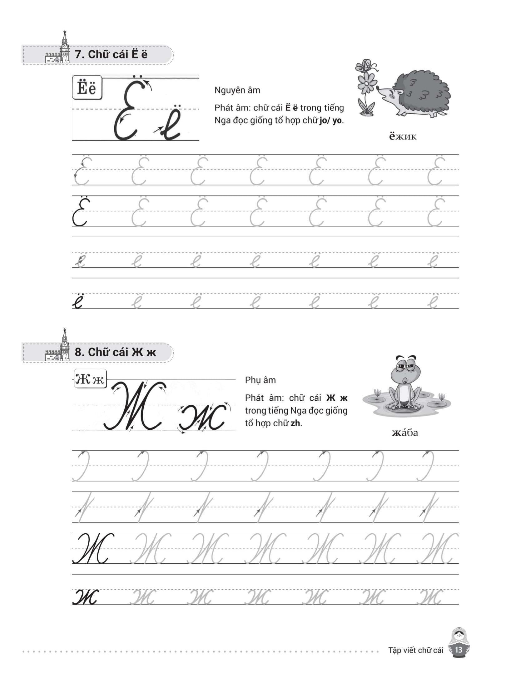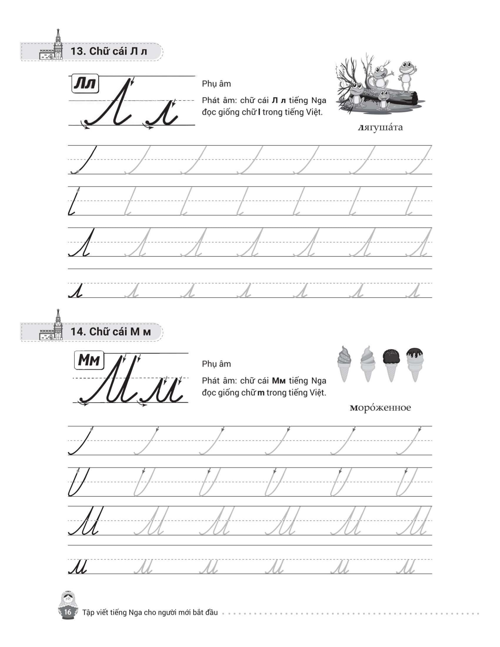 - Từ điển mini cuối sách giúp tra cứu và ghi nhớ từ vựng nhanh chóng. Trên đây là những nội dung nổi bật của cuốn sách mà chúng tôi muốn gửi đến bạn đọc – những ai đang bắt đầu hành trình chinh phục tiếng Nga từ những nét chữ đầu tiên. Hy vọng cuốn sách sẽ là người bạn đồng hành hữu ích, giúp bạn học dễ dàng, luyện viết hiệu quả và thêm yêu ngôn ngữ giàu văn hóa này. Chúc bạn học tốt và sớm đạt được mục tiêu của m.ình!