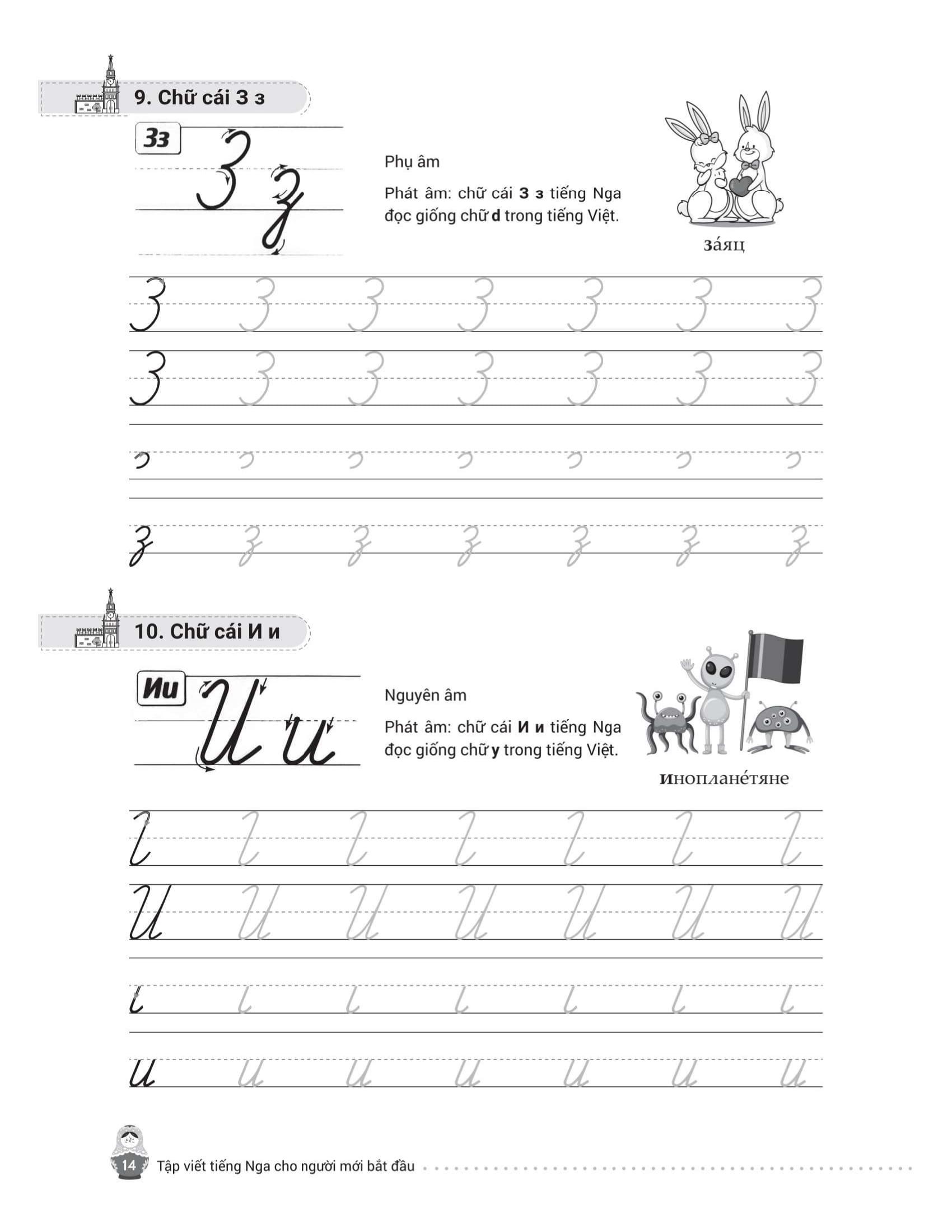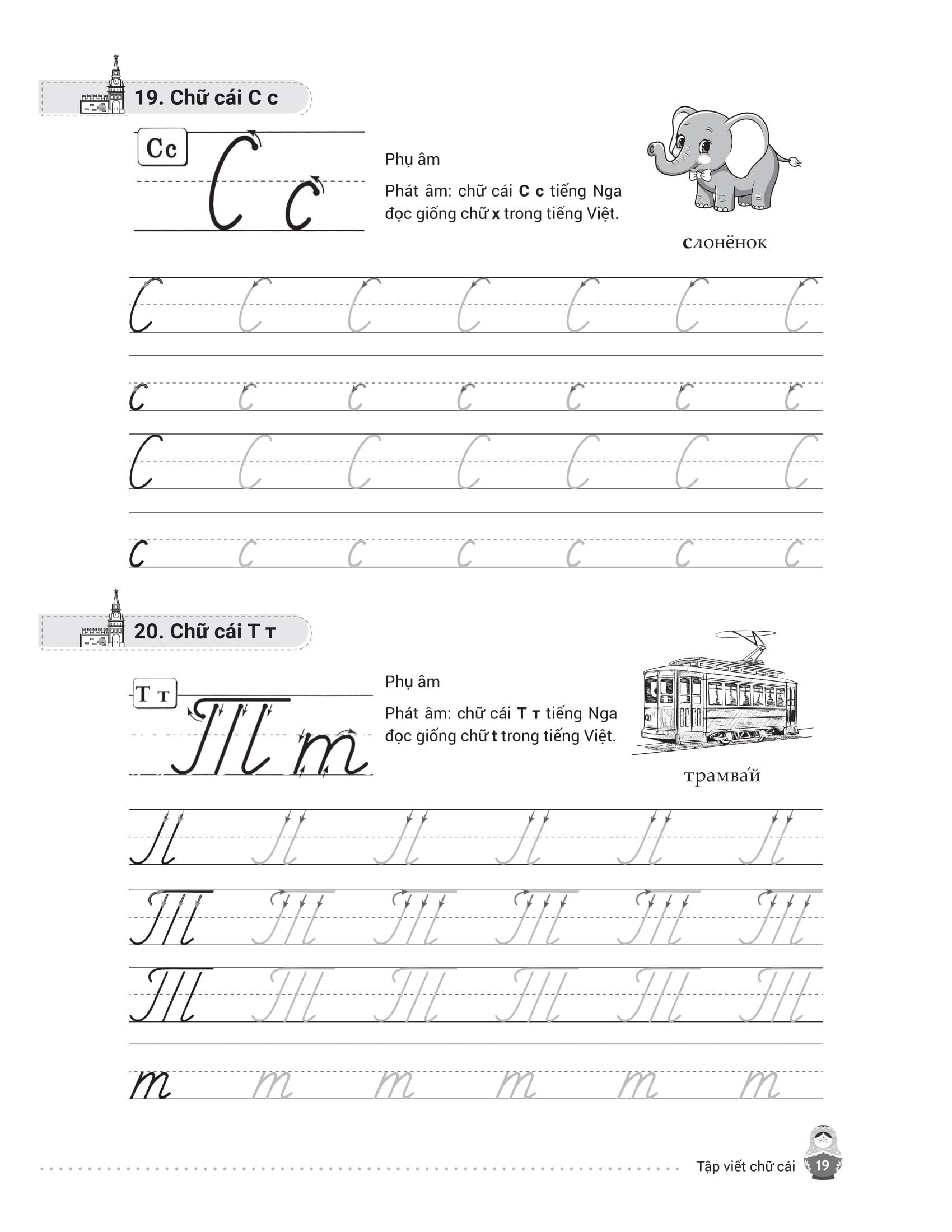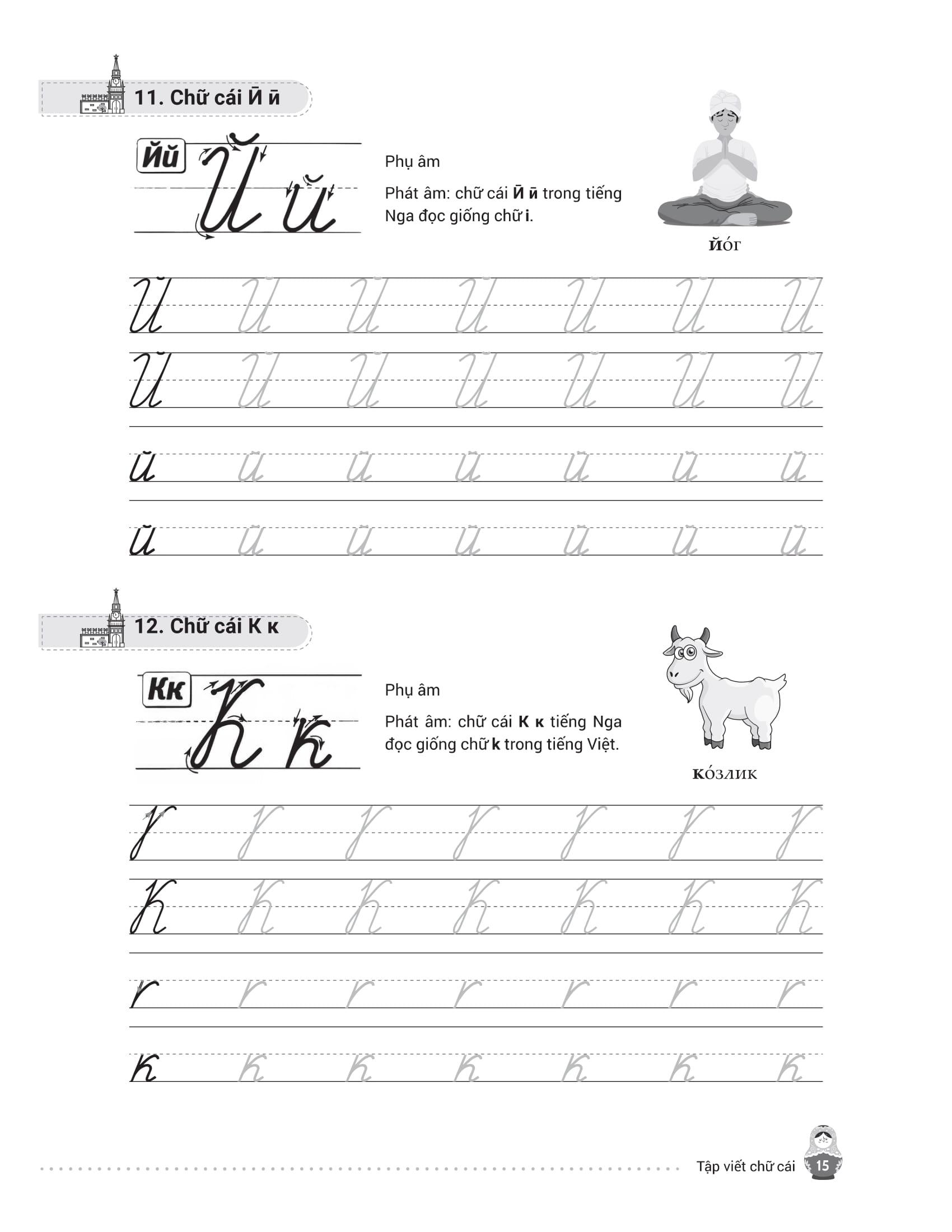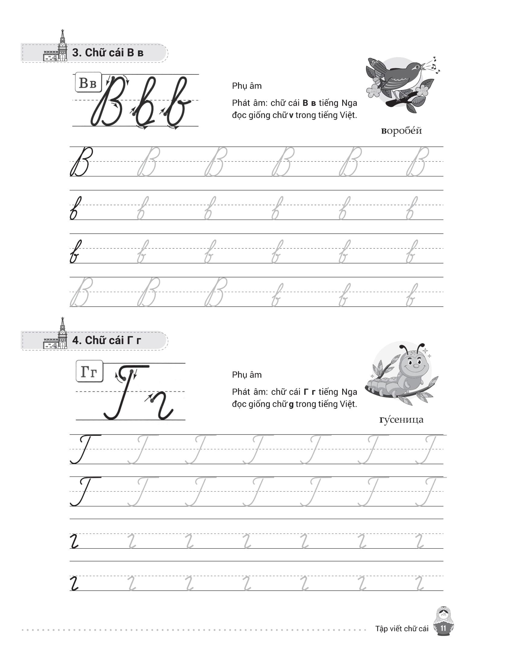 - Từ điển mini cuối sách giúp tra cứu và ghi nhớ từ vựng nhanh chóng. Trên đây là những nội dung nổi bật của cuốn sách mà chúng tôi muốn gửi đến bạn đọc – những ai đang bắt đầu hành trình chinh phục tiếng Nga từ những nét chữ đầu tiên. Hy vọng cuốn sách sẽ là người bạn đồng hành hữu ích, giúp bạn học dễ dàng, luyện viết hiệu quả và thêm yêu ngôn ngữ giàu văn hóa này. Chúc bạn học tốt và sớm đạt được mục tiêu của m.ình!