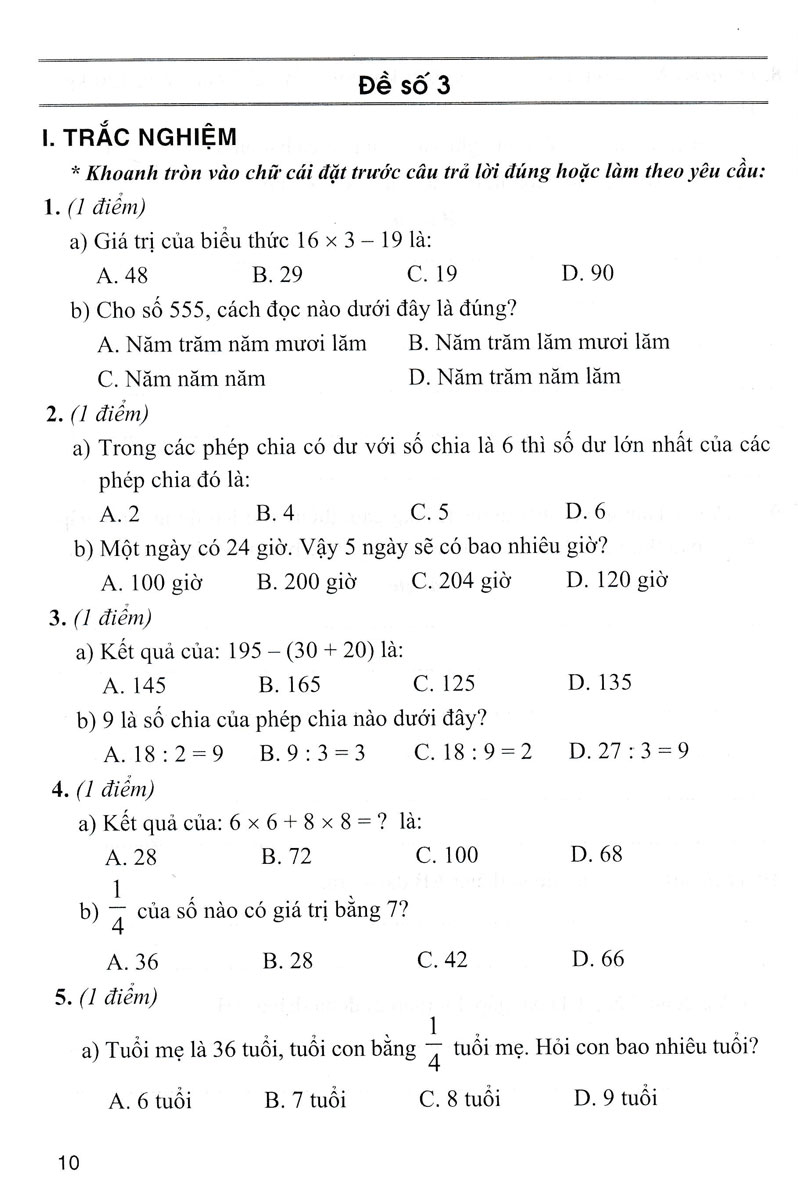 - Phần A: ĐỀ KIỂM TRA MÔN TOÁN LỚP 3