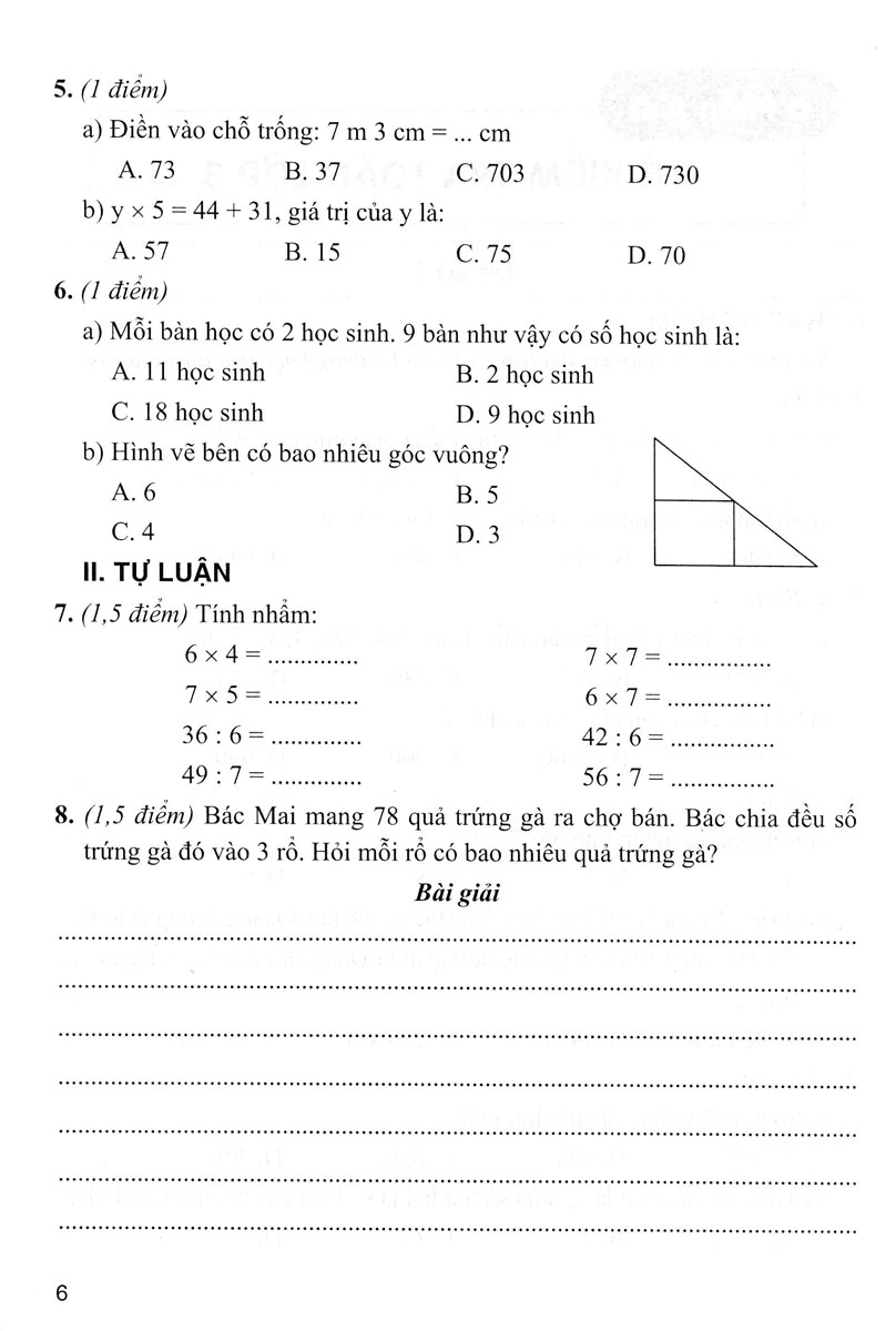 60 ĐỀ KIỂM TRA VÀ ĐỀ THI TOÁN LỚP 3 - GIỮA HỌC KÌ 1 - ĐỀ 2 -Thầy Nhựt TV