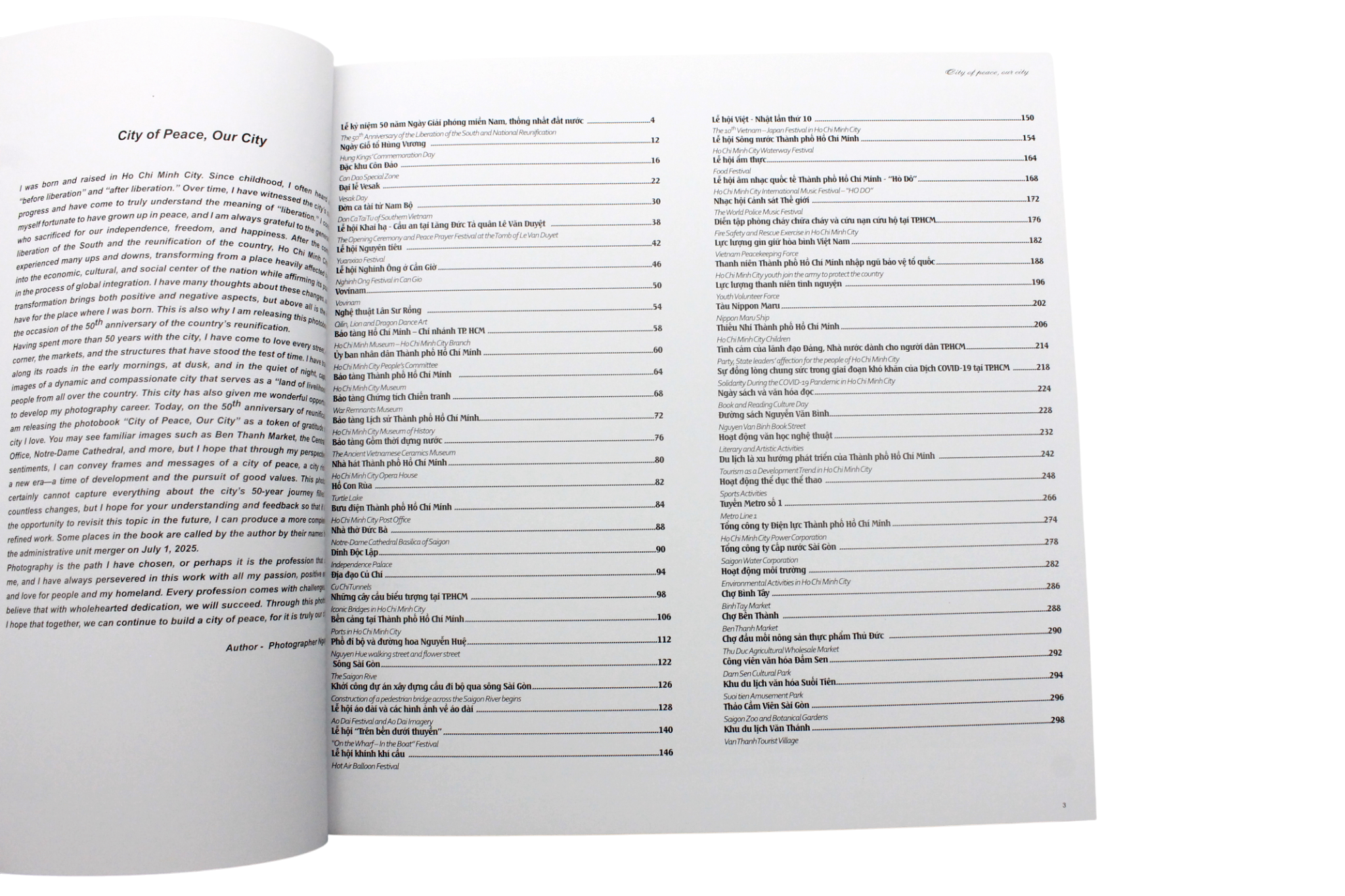 Mua tại TiktokThành Phố Hòa Bình - Thành Phố Của Chúng Ta Đối với cuốn sách “Thành phố hòa bình-Thành phố của chúng ta,” nhiếp ảnh gia Nguyễn Á chia sẻ, anh sinh ra và lớn lên ở Thành phố Hồ Chí Minh, nên anh rất yêu mảnh đất này, vì thế, anh đã đi nhiều, gặp nhiều, chụp nhiều hình ảnh về thành phố. Hơn 50 câu chuyện được anh đưa vào cuốn sách lần này không chỉ là những bức ảnh, mà là sự sống, là tinh hoa của mảnh đất Thành phố Hồ Chí Minh được anh lưu giữ qua các tác phẩm ảnh chất lượng, đưa người xem đến một góc nhìn khác về Thành phố Hồ Chí Minh - không chỉ là đô thị sầm uất, mà còn là một thành phố sống động, hài hòa, nơi con người gắn bó với cộng đồng và không gian sống.