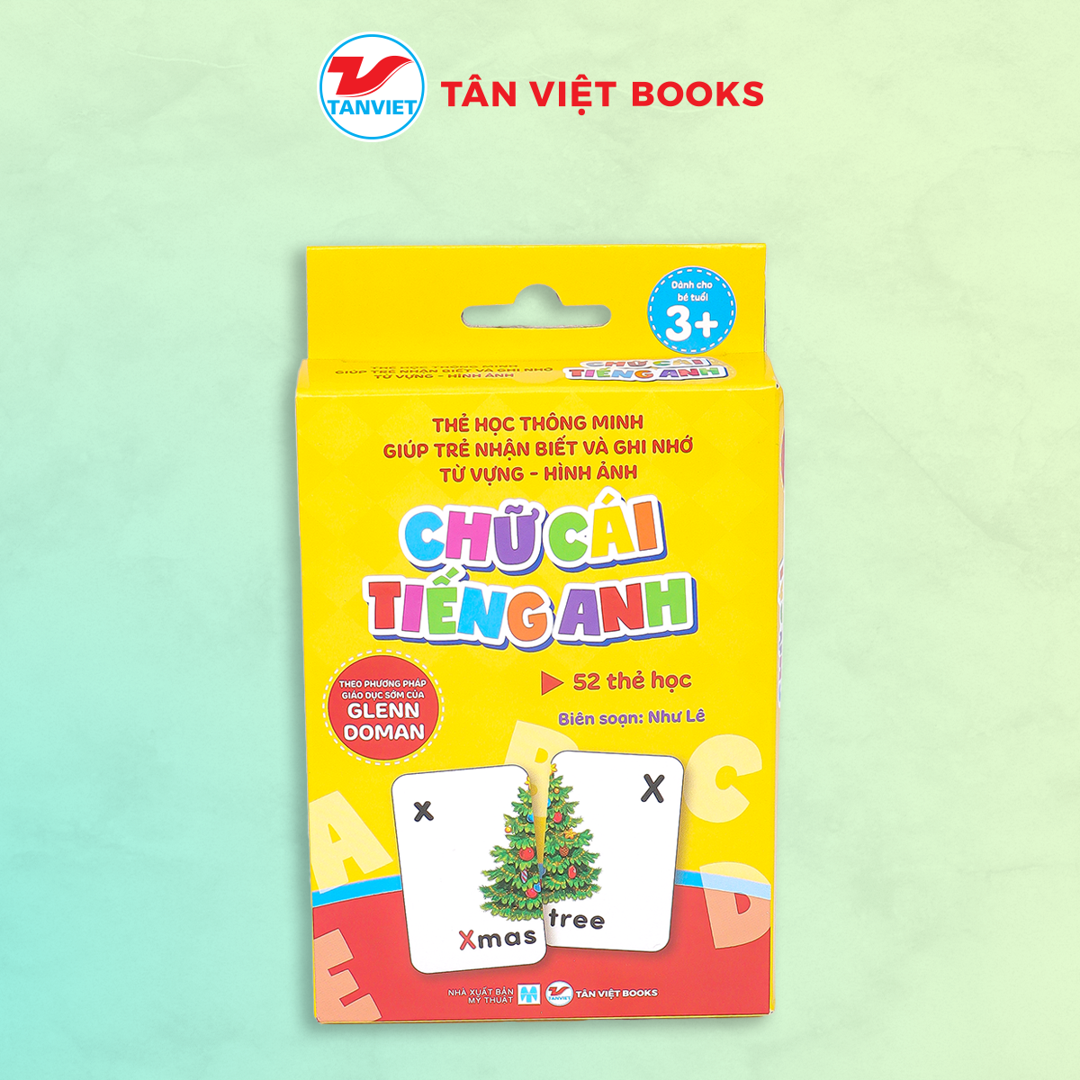 2. Chữ cái tiếng Anh Số thẻ: 52 Khổ: 8x12.5 Biên soạn: Như Lê Tân Việt Books liên kết xuất bản với NXB Mỹ thuật. Nội dung: Giúp trẻ nhận biết 26 chữ cái tiếng Anh và các từ vựng tiếng Anh.