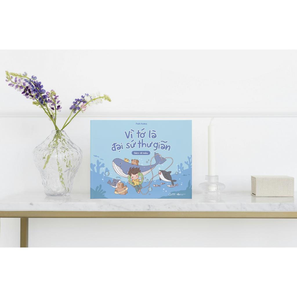 Vì tớ là đại sứ thư giãn là sách tô màu lấy Capybara làm nguồn cảm hứng. Không chỉ gây ấn tượng với ngoại hình ngộ nghĩnh, đáng yêu, Capybara còn khiến người ta cảm thấy thú vị với danh xưng “bộ trưởng bộ ngoại giao” vì có thể kết bạn với nhiều loài động vật khác, cũng như tính cách điềm tĩnh, luôn giữ được vẻ thư thái dù đang sống giữa các loài vật săn mồi nguy hiểm.