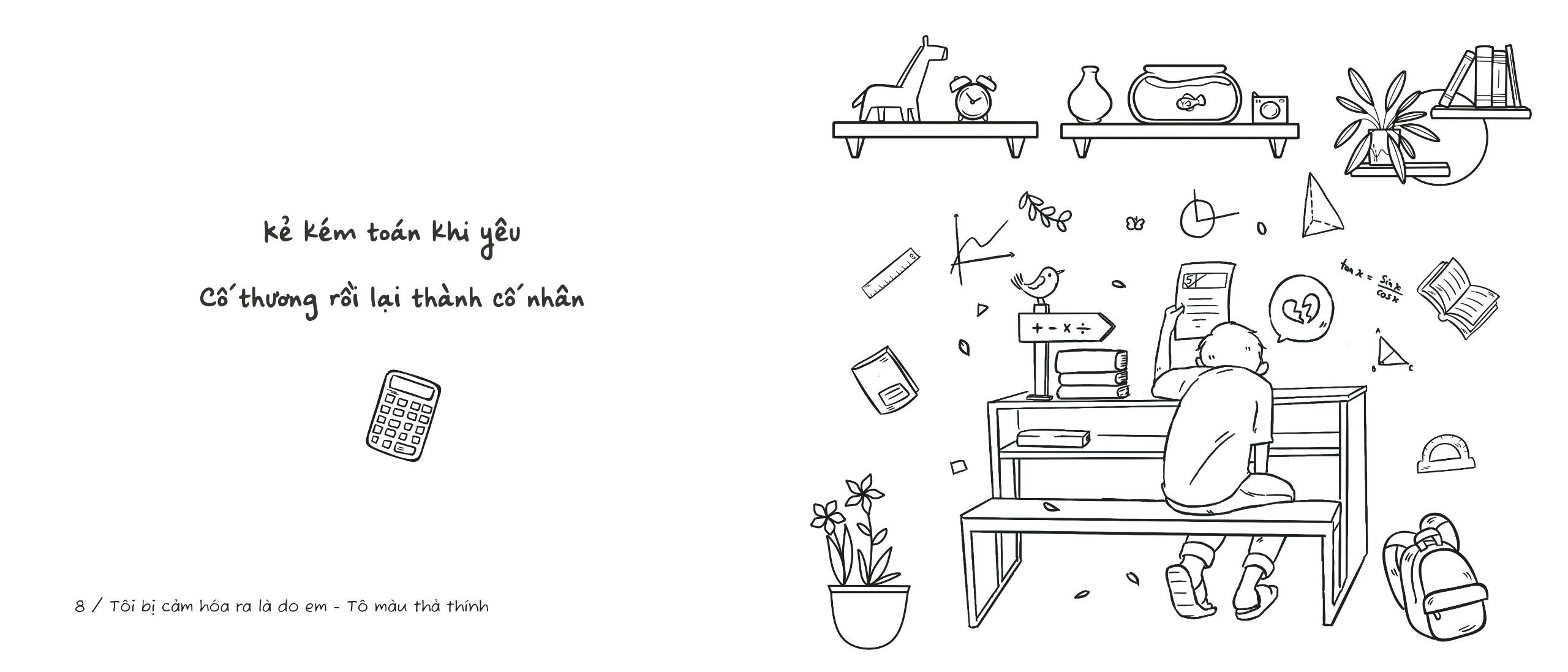 Phiên bản tô màu: “Tôi bị cảm hóa ra là do em - Tô màu thả thính” là sự kết hợp giữa những câu chơi chữ lém lỉnh của Phạm Duy Phúc và những bức tranh tinh nghịch của họa sĩ Thành Hà, họa sĩ trẻ gây ấn tượng với nét vẽ tinh nghịch, hài hước trong cộng đồng các bạn yêu vẽ minh họa.