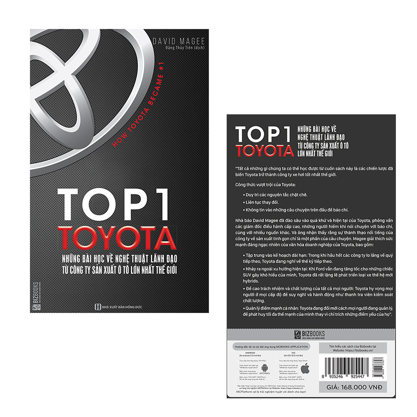 “Top 1 Toyota -Những Bài Học Về Nghệ Thuật Lãnh Đạo Từ Công Ty Sản Xuất Ô Tô Lớn Nhất Thế Giới” là cuốn sách hay và rất ý nghĩa. Cuốn sách là câu chuyện thành công của công ty sản xuất ô tô lớn nhất thế giới là bài học và là tấm gương sáng cho các doanh nghiệp học tập. Hiện nay cuốn sách Top 1 Toyota đã được dịch và xuất bản tại Việt nam và được công ty cổ phần sách Mcbooks mua bản quyền và xuất bản dưới thương hiệu Bizbooks. Chính vì vậy thay vì đọc bản “ Top 1 Toyota ebook” hay bản PDF thì độc giả có thể sở hữu cho mình một cuốn sách in chất lượng với nội dung phong phú, hấp dẫn và đầy đủ.