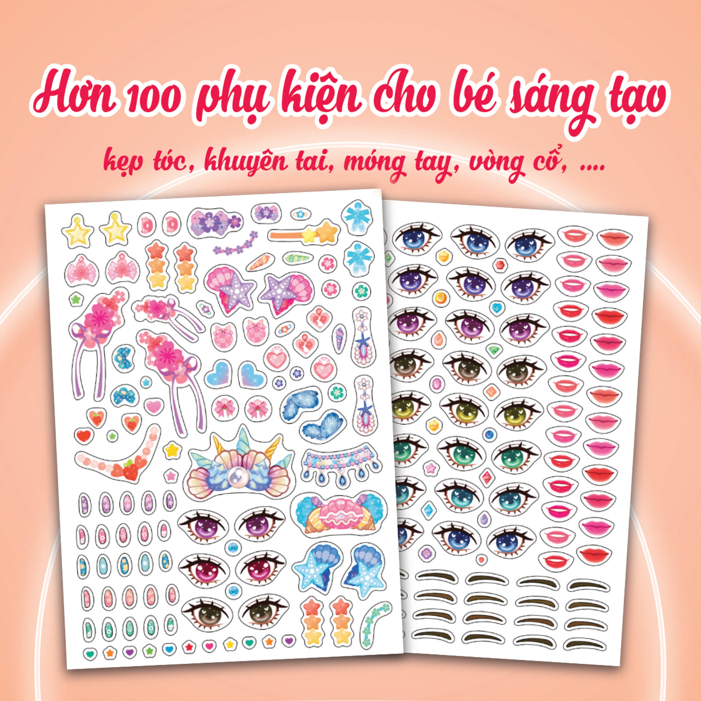 Bộ sách công chúa trang điểm trọn bộ gồm 4 cuốn, mỗi cuốn có 24 hình công chúa Hàn Quốc giúp các bé thỏa sức sáng tạo, hóa thân thành các phù thủy make up. Các bé có thể trang điểm cho các nàng công chúa với phong cách khác nhau: vẽ lông mày, đeo lens, tô son, đeo khuyên tai, dây chuyề làm tất cả mọi thứ để các nàng công chúa xinh hơn.
