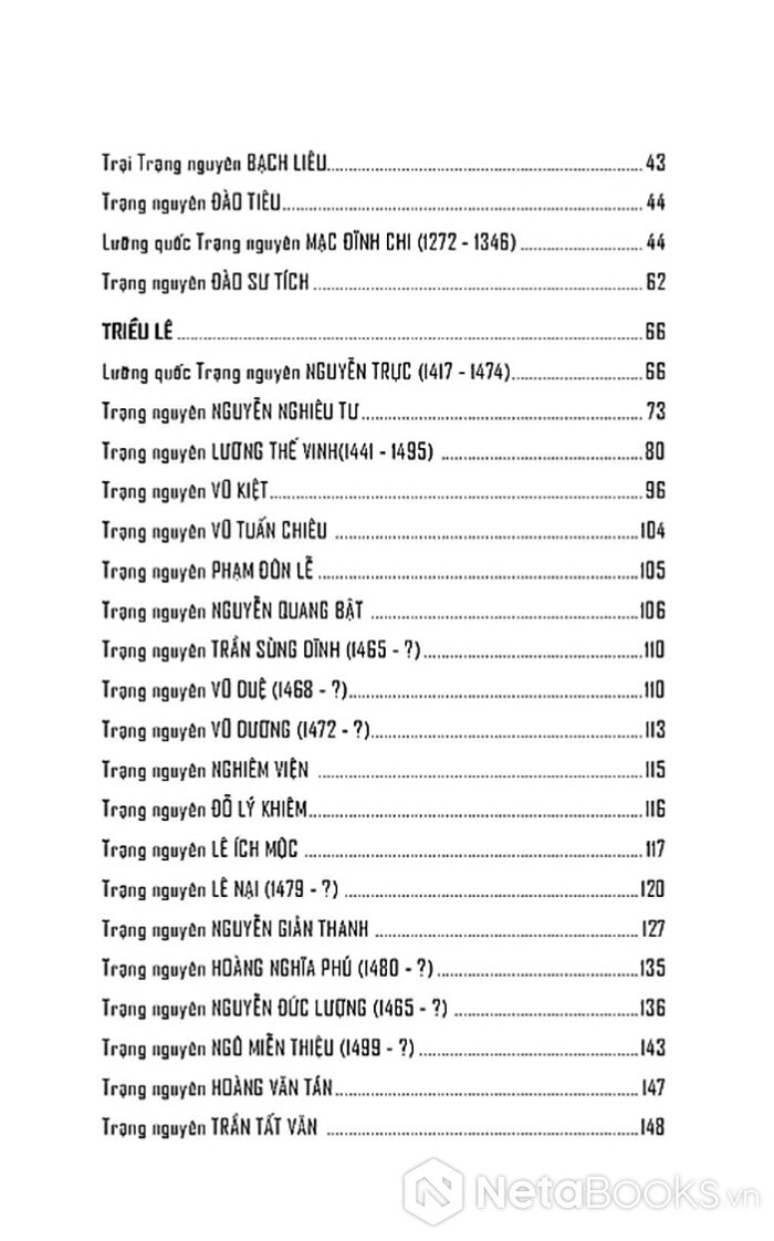Tác giả: Nhiều tác giả Ngôn ngữ: tiếng Việt Số trang: 232 Năm xuất bản: 2024 Nhà xuất bản: Hà Nội Kích thước: 13 x 20 m Hình thức: bìa mềm Cuốn sách Trạng nguyên Việt Nam đem đến cho bạn đọc câu chuyện về những học trò nghèo nỗ lực học hành để đổ đạt như Trạng nguyên Nguyễn Nghiêu Tư, Nguyễn Trực,... Chuyện về Trạng nguyên Nguyễn Hiền tiêu biểu cho những người trẻ tuổi trong lịch sử Việt Nam có tài cao, danh vọng lớn, đổ trạng ở tuổi 13. Chuyện về thiên tài toán học Lương Thế Vinh với Khải minh toán học và Đại thành toán pháp; Trạng nguyên Trần Tất Văn viết văn đuổi được giặc; Trạng nguyên Nguyễn Bỉnh Khiêm với những giai thoại sấm Trạng Trình...