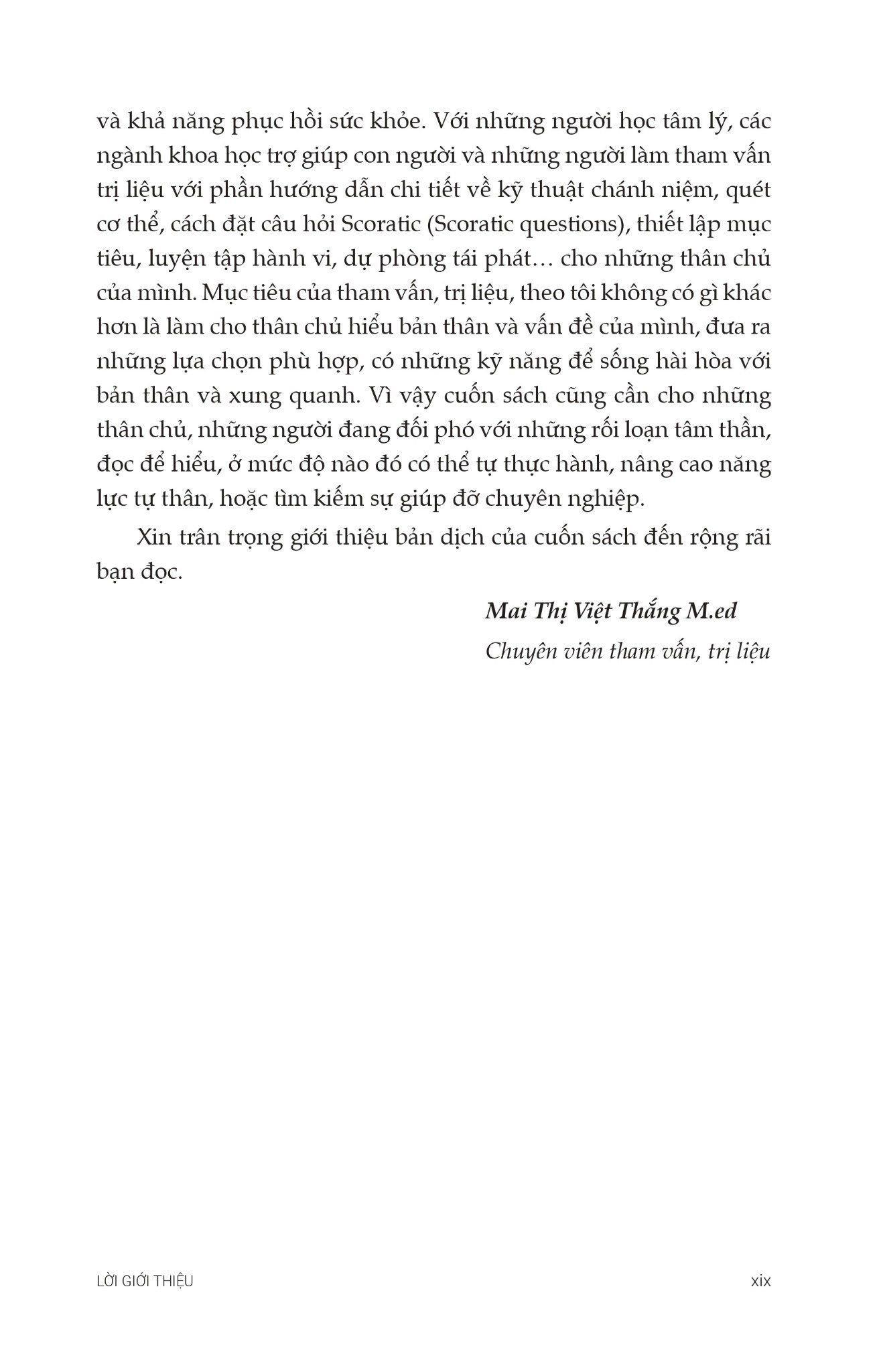 Tiếp Cận Trị Liệu Nhận Thức Hành Vi - TS LÊ THỊ MINH TÂM - Lời Giới Thiệu