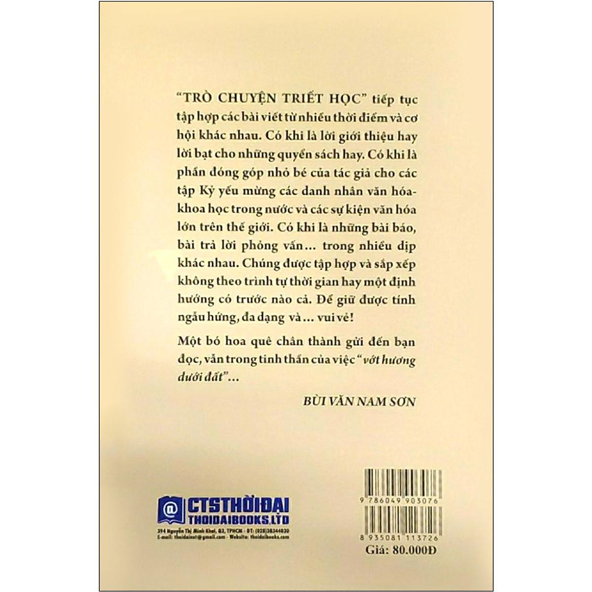 Trò Chuyện Triết Họclà tập hợp 92 bài viết của nhà nghiên cứu triết học Bùi Văn Nam Sơn, đăng trên báo Sài Gòn Tiếp Thị gần 2 năm (25.5.2010 – 16.4.2012).