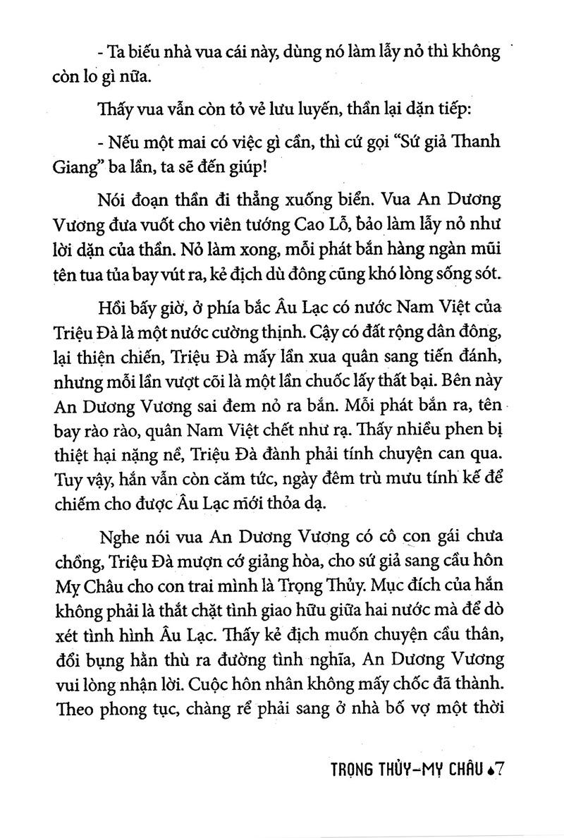 Truyện Cổ Tích Việt Nam Chọn Lọc – Trọng Thủy Mỵ Châu kể về nhà nước Âu Lạc thời mới dựng nước. Vua An Dương Vương có người con gái tên là Mị Châu. Vua Triệu Đà đất Nam Hải có người con tên Trọng Thủy, Trọng thủy và Mỵ Châu kết duyên vợ chồng nhưng không ai ngờ, An Dương Vương lại mất nước vì lòng thủy chung son sắt của chính con gái m.ình.