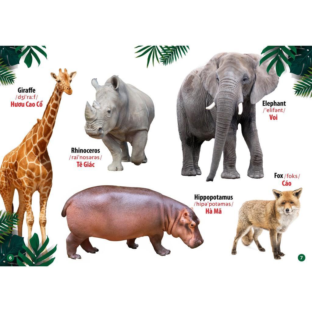 Thông qua các loài như: Gia súc, động vật hoang dã, động vật biển... những bức ảnh sặc sỡ cùng các khung hình sống động sẽ tái hiện lại cuộc sống muôn loài trên Trái đất, đồng thời giúp bé phát triển kĩ năng quan sát, xây dựng vốn từ vựng tiêng Anh phong phú về động vật, giúp bé khám phá thế giới động vật muôn màu.