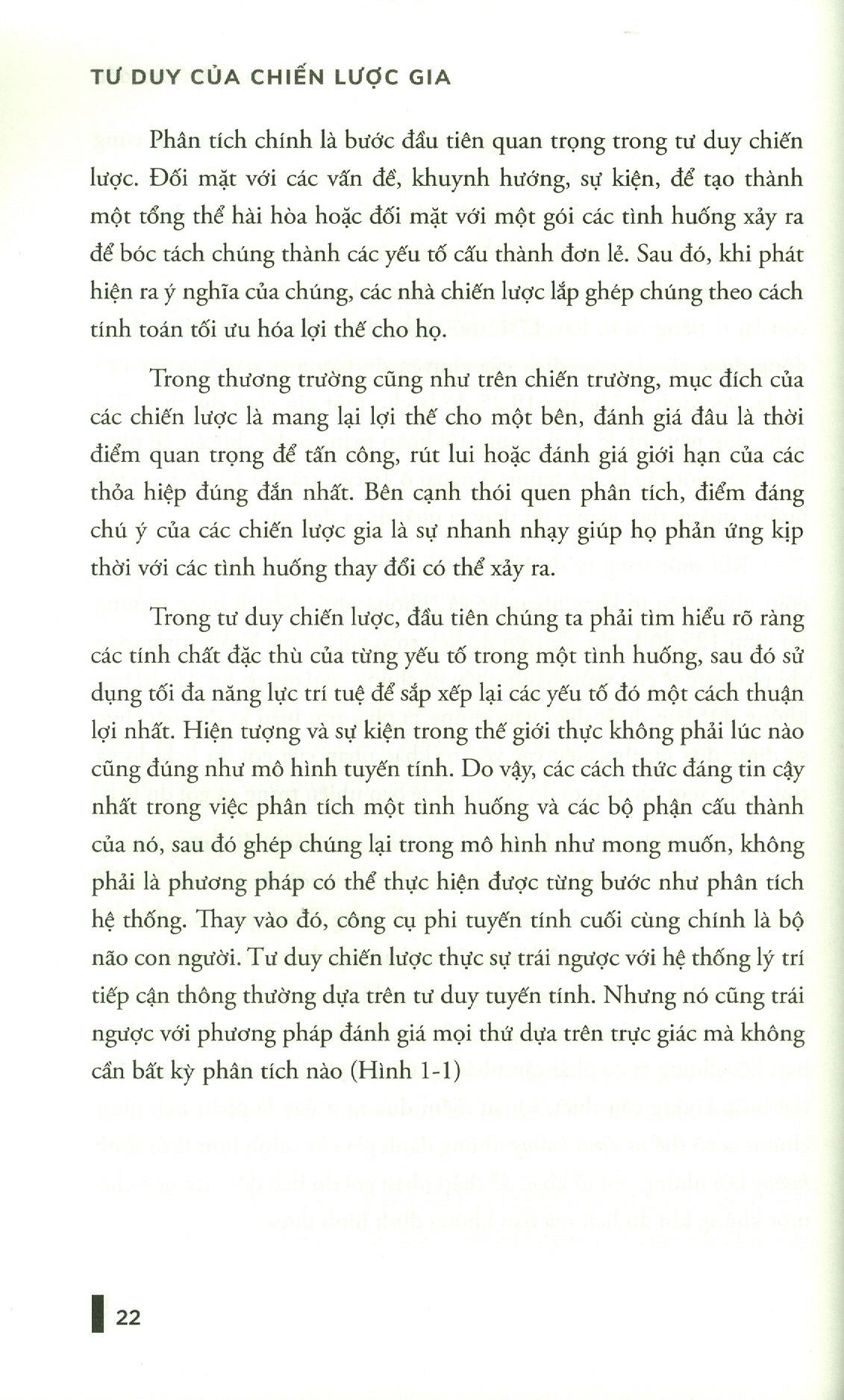 Với hàng loạt các nghiên cứu tình huống về tư duy chiến lược, tác phẩm đậm chất cổ điển này của Ohmae đã truyền thêm động lực cho các nhà quản lý ngày nay tiếp tục trau dồi thêm kỹ năng, phát huy trí tưởng tượng và tìm ra thêm nhiều giải pháp hơn nữa cho doanh nghiệp.