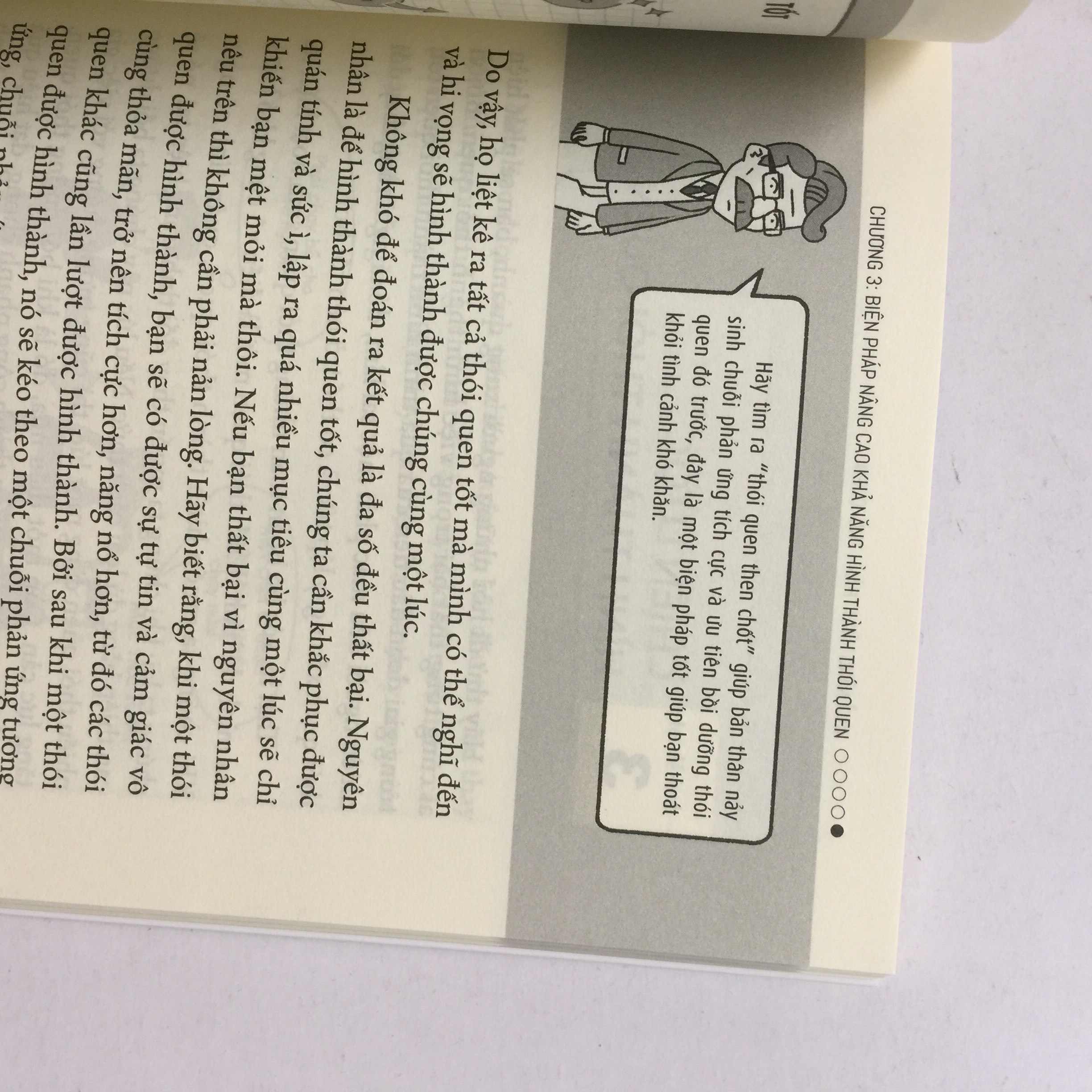 Trong công việc và cuộc sống, con người có rất nhiều loại thói quen tốt và xấu. Cả hai loại thói quen này đều có ảnh hưởng vô cùng lớn tới chất lượng cuộc sống của chúng ta. Vậy thì làm thế nào để có thể nhanh chóng loại bỏ thói quen xấu và hình thành thói quen tốt, giúp cuộc sống và công việc ngày càng tuyệt vời hơn? “Khả năng hình thành thói quen - Tạo lập thói quen mới chỉ sau 3 tuần” chính là cuốn cẩm nang bạn đang cần. Cuốn sách với những hình ảnh sinh động sẽ giúp bạn nhanh chóng lí giải và nắm bắt được các phương thức để trở thành người giỏi làm chủ các thói quen … Hãy cùng khám phá cuốn sách thú vị này! Cảm ơn bạn đã tham khảo cuốn sách này. Chúc một ngày tốt lành!