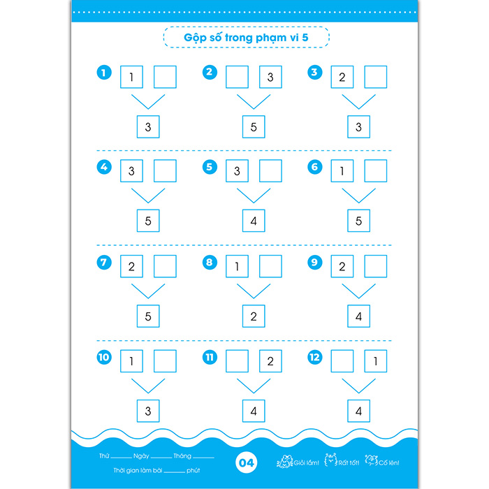 - Tách Gộp Trong Phạm Vi 10 – Nhẩm Nhanh Tính Đúng– Củng cố kỹ năng tách gộp số trong phạm vi 10, rèn phản xạ tính toán nhanh, chính xác.