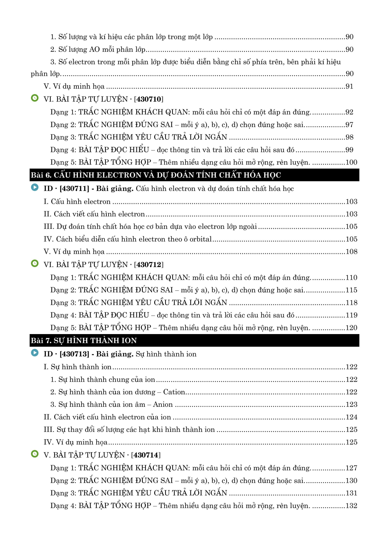 - Chủ đề 1: Cấu tạo nguyên tử - Chủ đề 2: Bảng tuần hoàn các nguyên tố hoá học - Chủ đề 3: Liên kết hoá học - Chủ đề 4: Phản ứng oxi