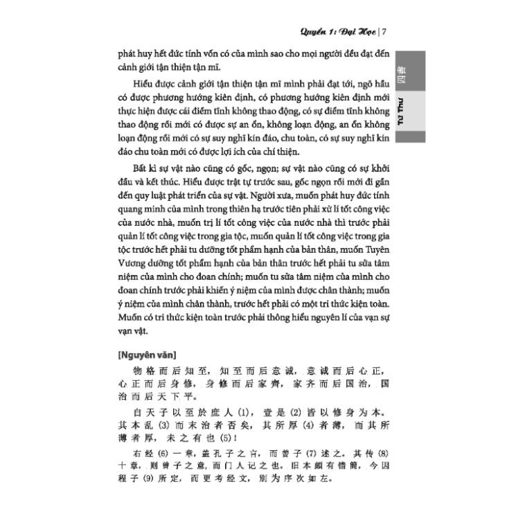 - Phần Nguyên văn: Nội dung của Tứ Thư được đánh nguyên văn chữ Hán.