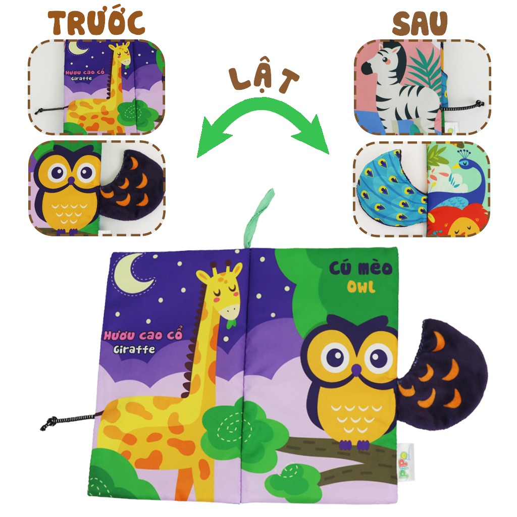 ✨Sách Vải Tương Tác Cho Bé Đoán Đuôi Con Vật - Dạo Chơi Rừng Xanh