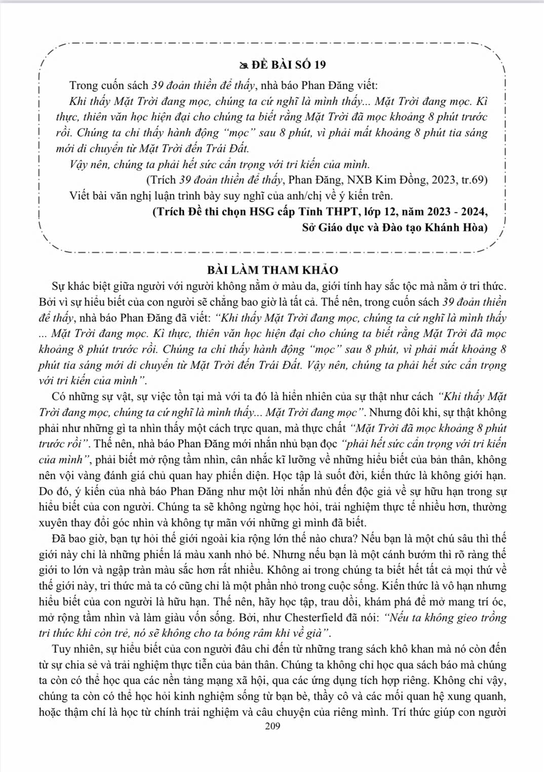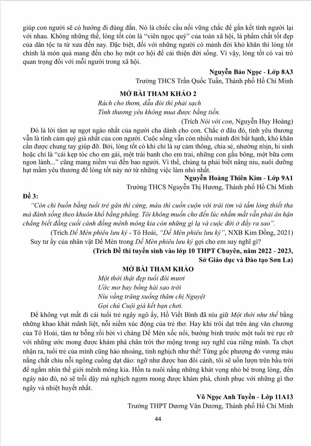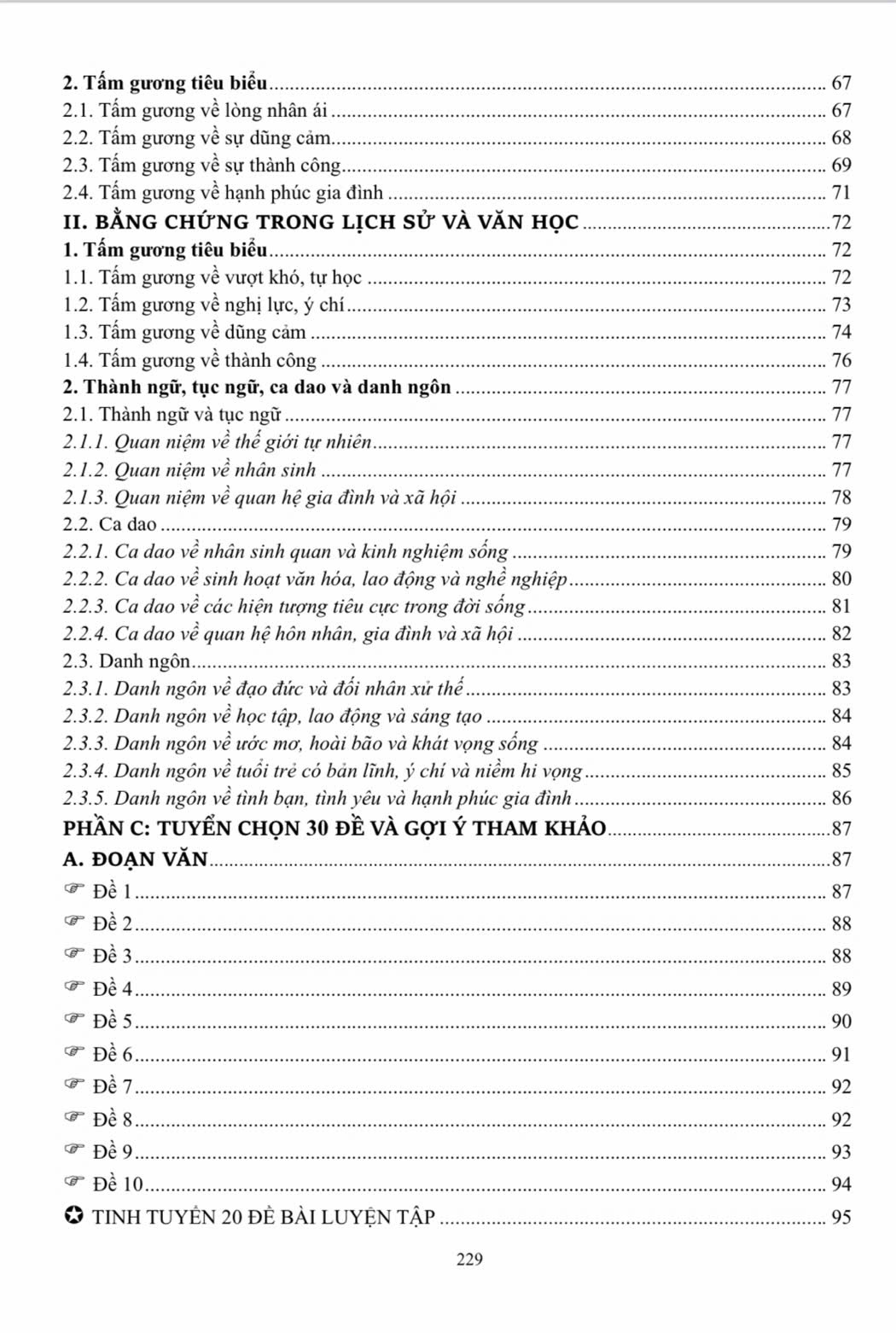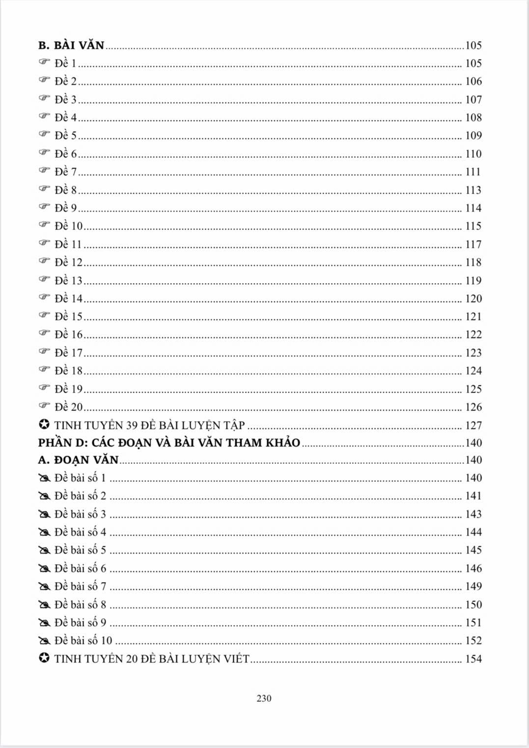 Điểm đáng chú ý của cuốn sách này là tuyển chọn 30 đề thi và đáp án tham khảo cùng nhiều đề bài luyện tập hay được sưu tầm và tuyển chọn. Để giúp bạn đọc có thêm nguồn tư liệu tham khảo thật phong phú, ngoài các đoạn và bài viết của học sinh đã được chỉnh sửa và hoàn thiện, chúng tôi xin phép được trích dẫn một số tác phẩm của nhà văn, nhà thơ; sử dụng đề thi và đáp án chính thức của Phòng Giáo dục và Đào tạo một số thị xã/huyện; Sở Giáo dục và Đào tạo một số tỉnh thành; của Bộ Giáo dục và Đào tạo trong thời gian gần đây.