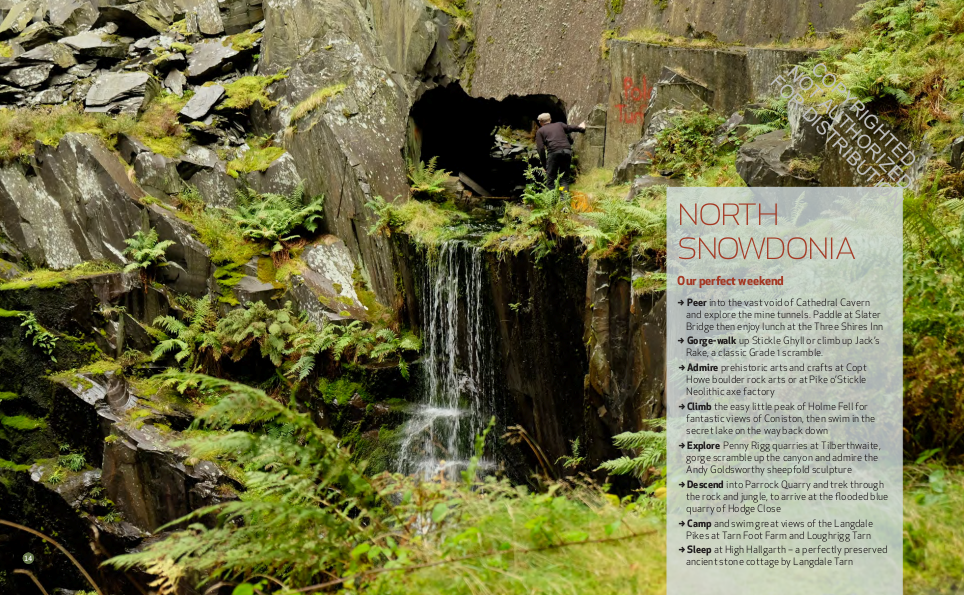 ---------------------------------------- A new compendium of adventures, from the best-selling Wild Guide series (winner of travel guidebook of the year 2015). This guide to Wales and the Welsh Marches, one of Europe's fastest growing adventure holiday destinations, explores the hidden parts of its better known tourist areas, as well many more remote regions, rarely visited by tourists. Guiding you to over 800 wild swims, ancient forests, lost ruins and hidden beaches. Including inns, wild camping, local crafts, artisan whisky distilleries and wild places to stay. Mesmerising photography - a beautiful giftable book. For the discerning explorer, adventurous family and those seeking the ultimate weekend escape. Packed with practical information including GPX co-ordinates and 25 maps