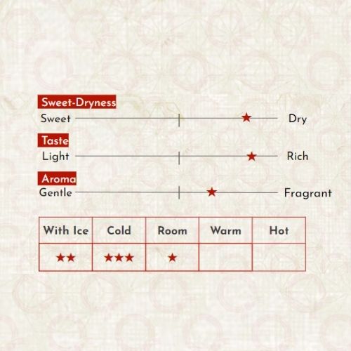 NGƯỜI DƯỚI 18 TUỔI KHÔNG ĐƯỢC UỐNG RƯỢU, BIA Xuất xứ: Nhật Bản Thành phần: Gạo, nước, men rượu Hàm lượng Ethanol: 14.7% Hướng dẫn sử dụng: Uống trực tiếp, uống nóng hoặc lạnh Hướng dẫn bảo quản: Bảo quản