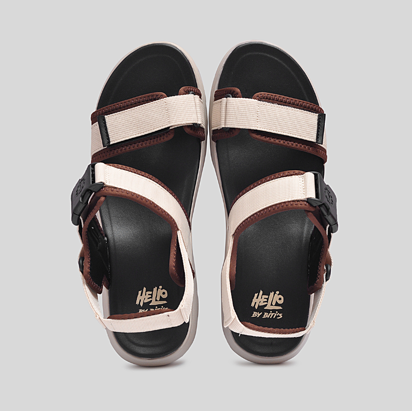 Dép sandal Helio BEB005000 nâu phối kem mang hơi hướng retro hiện đại, với phối màu nâu chocolate trầm ấm kết hợp đường viền kem nhẹ, cực kỳ hợp cho những bạn trẻ yêu thích phong cách tối giản – cổ điển pha chút cá tính.