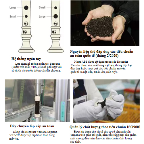 Sáo Yamaha YRS-24B có cấu tạo miệng thổi nằm dọc theo cây sáo nên khi thổi ta chỉ cần ngậm vào thổi nhẹ là phát ra tiếng kêu, kể cả người chưa thổi sáo bao giờ hay trẻ em rất nhỏ cũng sử dụng được. Chất liệu nhựa cao cấp ABS, an toàn khi sử dụng cho trẻ nhở và người lớn Thiết kế đẹp Độ bền cao Hệ thống Fingering : Baroque