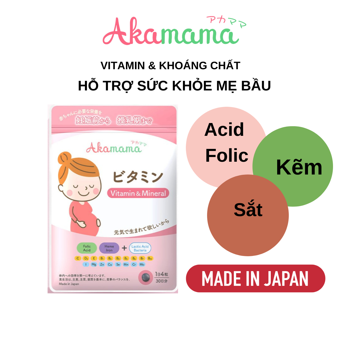 Ưu điểm nổ bật của viên uống Vitamin tổng hợp cho mẹ bầu Akamama Nhật Bản: Ưu điểm 1: Bổ sung đầy đủ 11 loại vitamin và 9 loại khoáng chất cần thiết cho thai kỳ với hàm lượng vừa đủ và an toàn cho th...