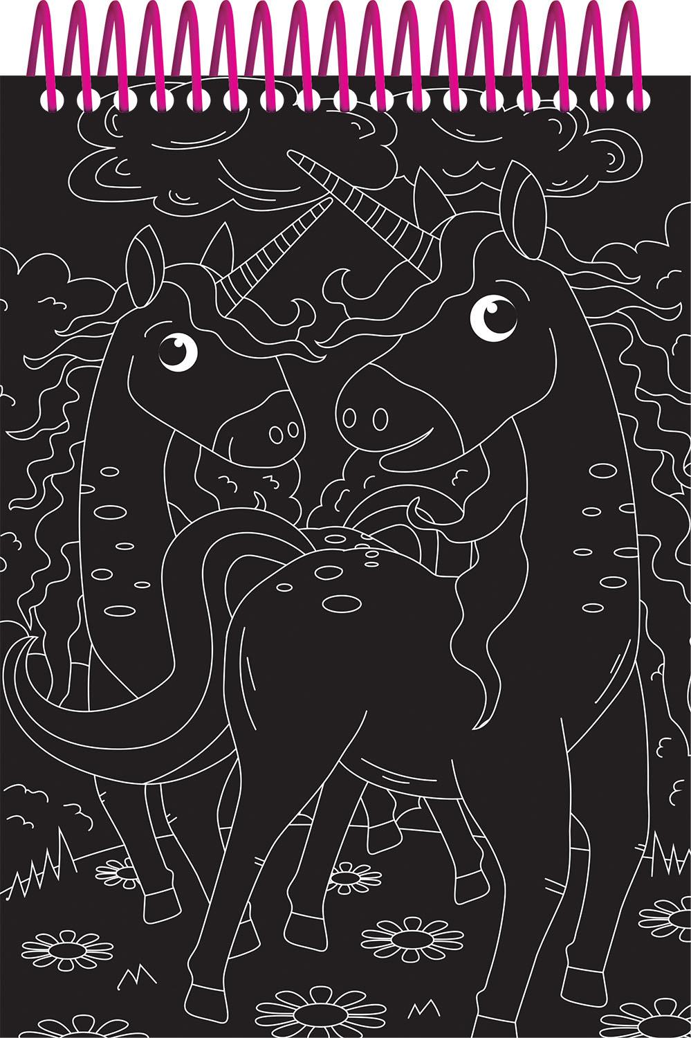Scratch, colour and create magical unicorn pictures with this art easel activity book that is packed with scratch card pictures to create and colouring-in pictures to complete!