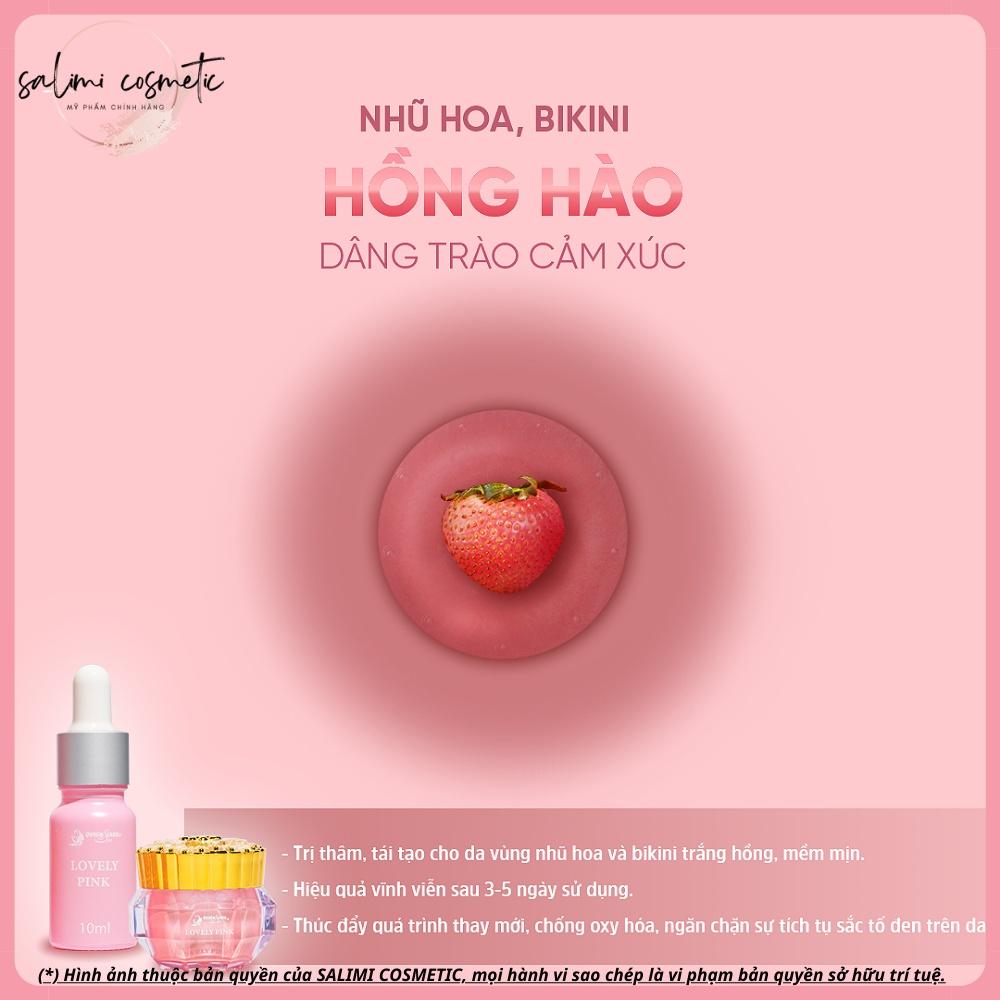 - Làm hồng vùng kín lovely pink giúp làm nhạt màu thâm của quầng vú và đầu vú, cải thiện độ thô nháp của da, khôi phục độ bóng nhẵn và mềm mại cho da.