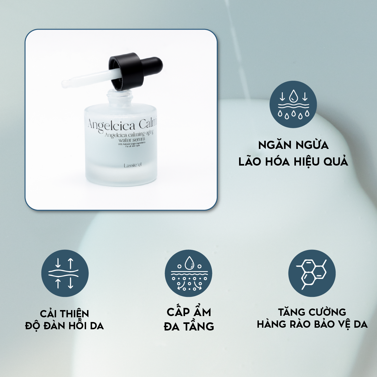 Serum Lassie'el là một phức hợp dưỡng chất cấp ẩm sâu, ngăn ngừa lão hóa, phục hồi, hỗ trợ dưỡng trắng giảm mụn và làm dịu da với sức mạnh của Angelica Keiskei. Nhờ thành phần giàu dưỡng chất, serum Lassie'el đem lại cho bạn một làn da căn bóng ẩm mịn, tăng độ đàn hồi da. Sản phẩm đã hoàn thành 9 loại kiểm nghiệm lâm sàng chứng nhận công dụng sau 4 tuần sử dụng