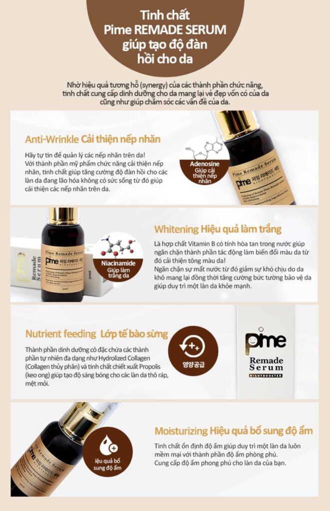 SERUM NỌC ONG PIME REMADE 50MLSERUM NỌC ONG PIME REMADE 50ML Khôi phục, tái sinh làn da: giúp kháng khuẩn, kháng viêm, giúp da giảm bớt chứng viêm nhiễm do những da bị nổi mẩn hay trứng cá Thành ...