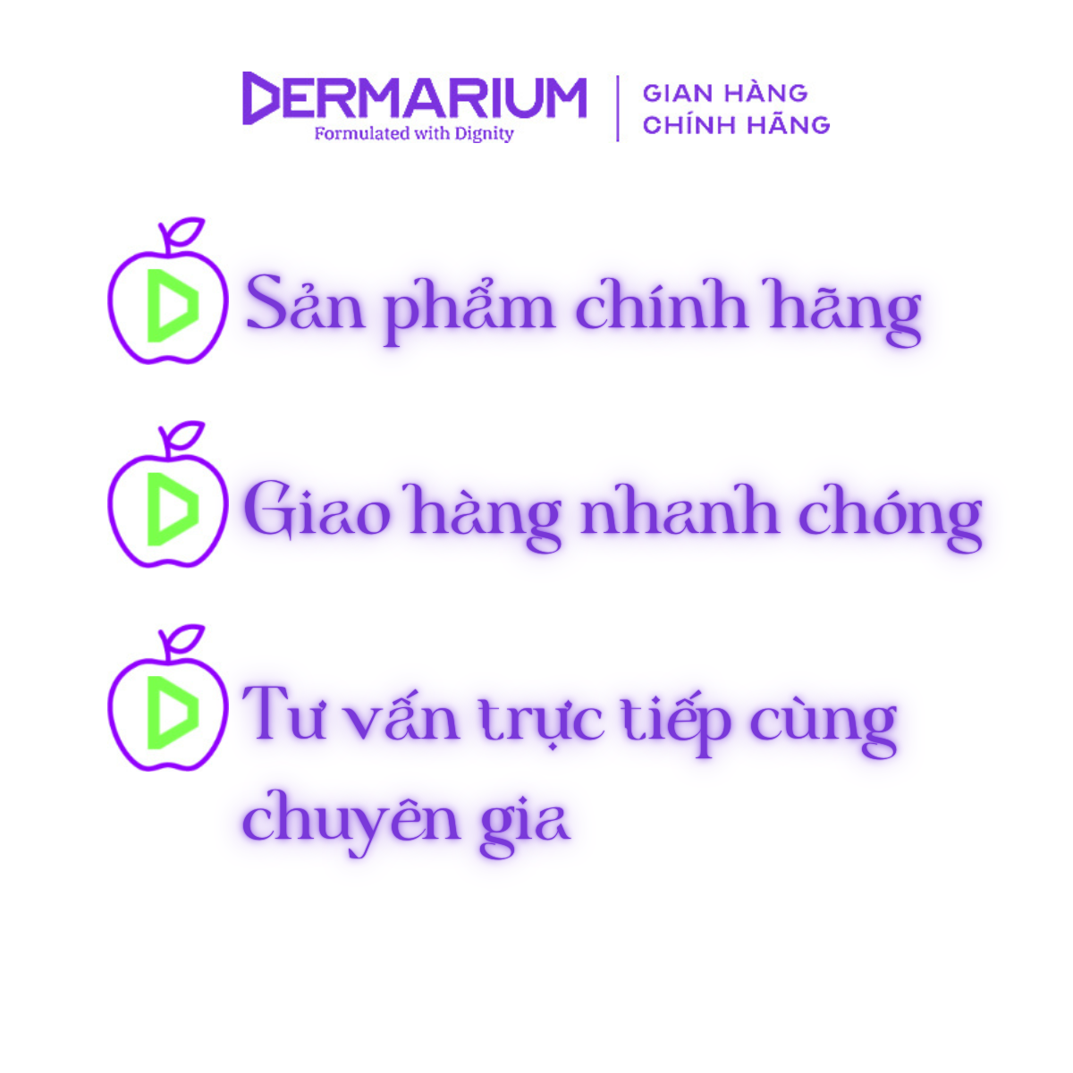 Công thức sản phẩm được nâng cấp liên tục theo phương châm sáng tạo của Dermarium, do đó thành phần hiển thị tại đây có thể chưa được cập nhật kịp thời như thông tin trên bao bì, tùy theo thời điểm mua hàng.