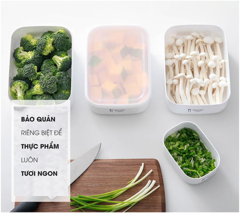 - Hộp bảo quản được làm bằng nhựa cao cấp Tritan trong suốt không chứa BPA - Gia tăng tuổi thọ thực phẩm tươi sống, thực phẩm chín lên tới gần 4 lần - Tích