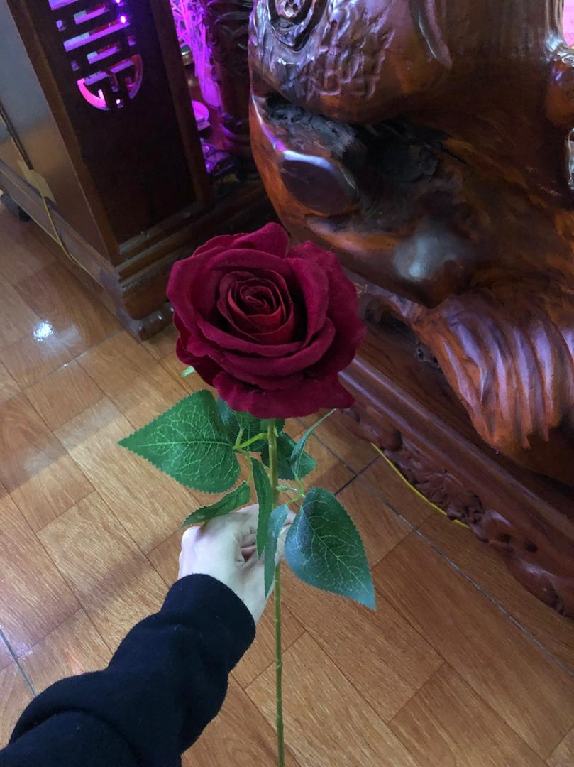 Hồng nhung giả 1 bông dài 70 cm, đường kính bông 10 cm.