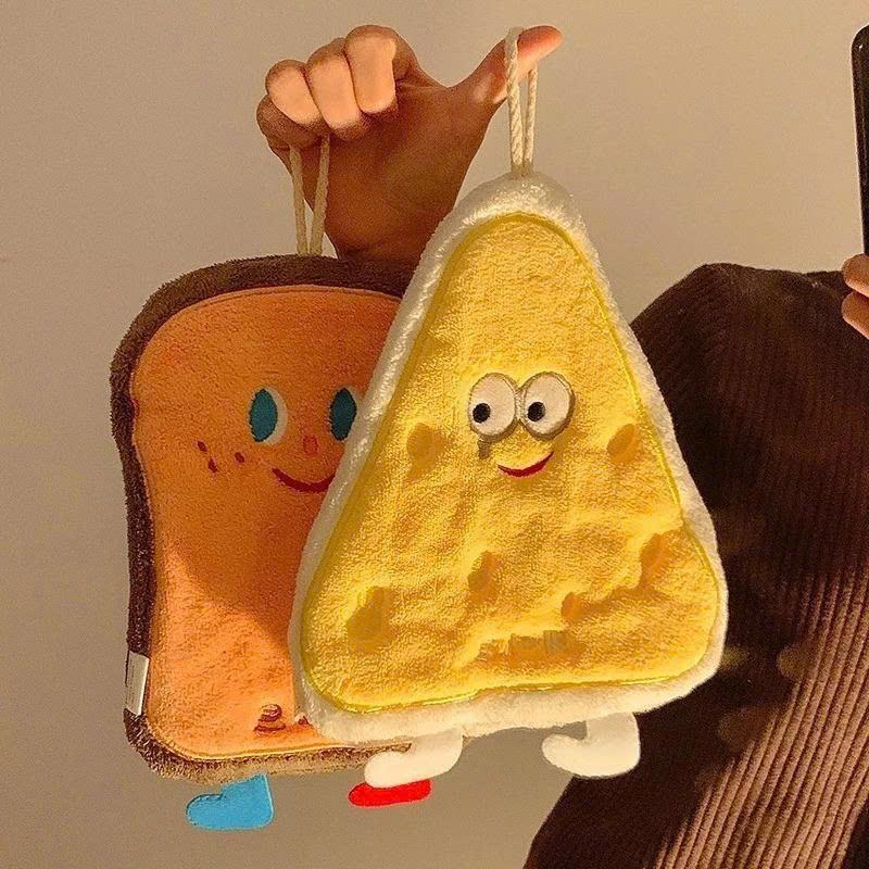 Set 4 Khăn Lau Tay Thấm Hút Tốt Hoạ Tiết Bánh Mỳ Phô Mai Cute- Chiếc Khăn Lau Tay Mềm Mịn Thấm Hút