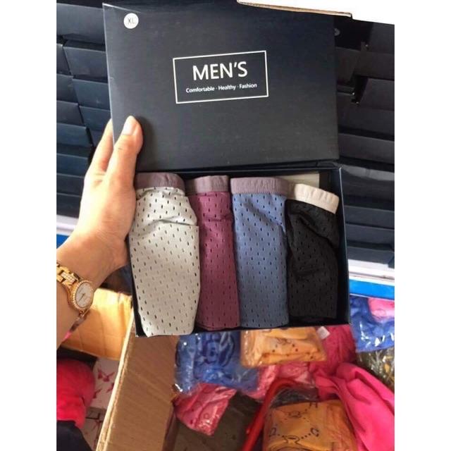 Quần lót nam thông hơi - HỘP 4 CHIẾC - Quần sịp đùi nam Hàng loại 1 Chất Liệu: Siêu mềm, siêu mịn, co giãn thoải mái, thông thoáng mát lạnh - Size XL :45-60kg
