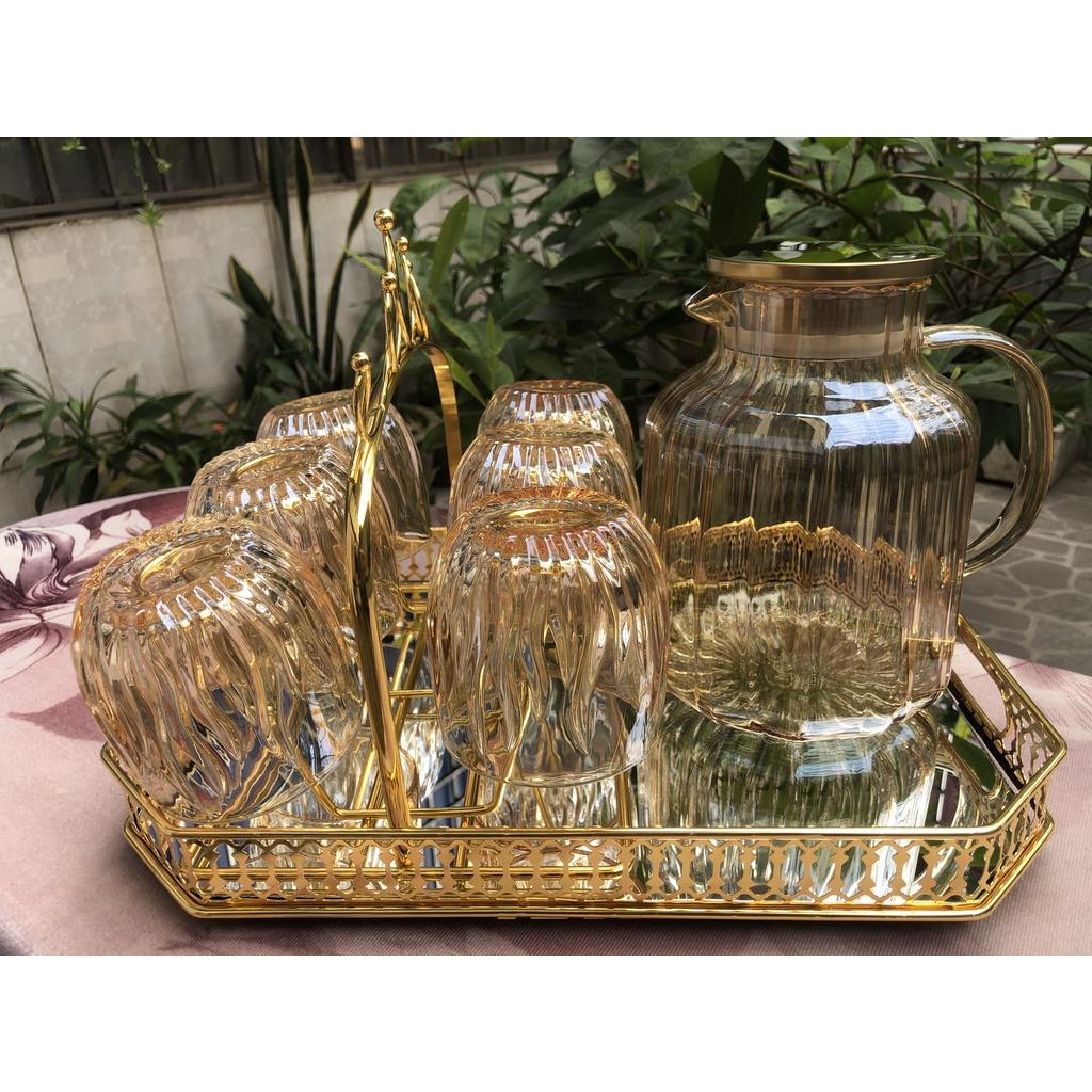 Chất liệu: thủy tinh Bộ sản phẩm gồm: 6 cốc thủy viền vàng Thiết kế đẹp mắt, phù hợp tiện dụng Độ bền cao, chịu nhiệt tốt, hạn chế nứt vỡ do tác động của